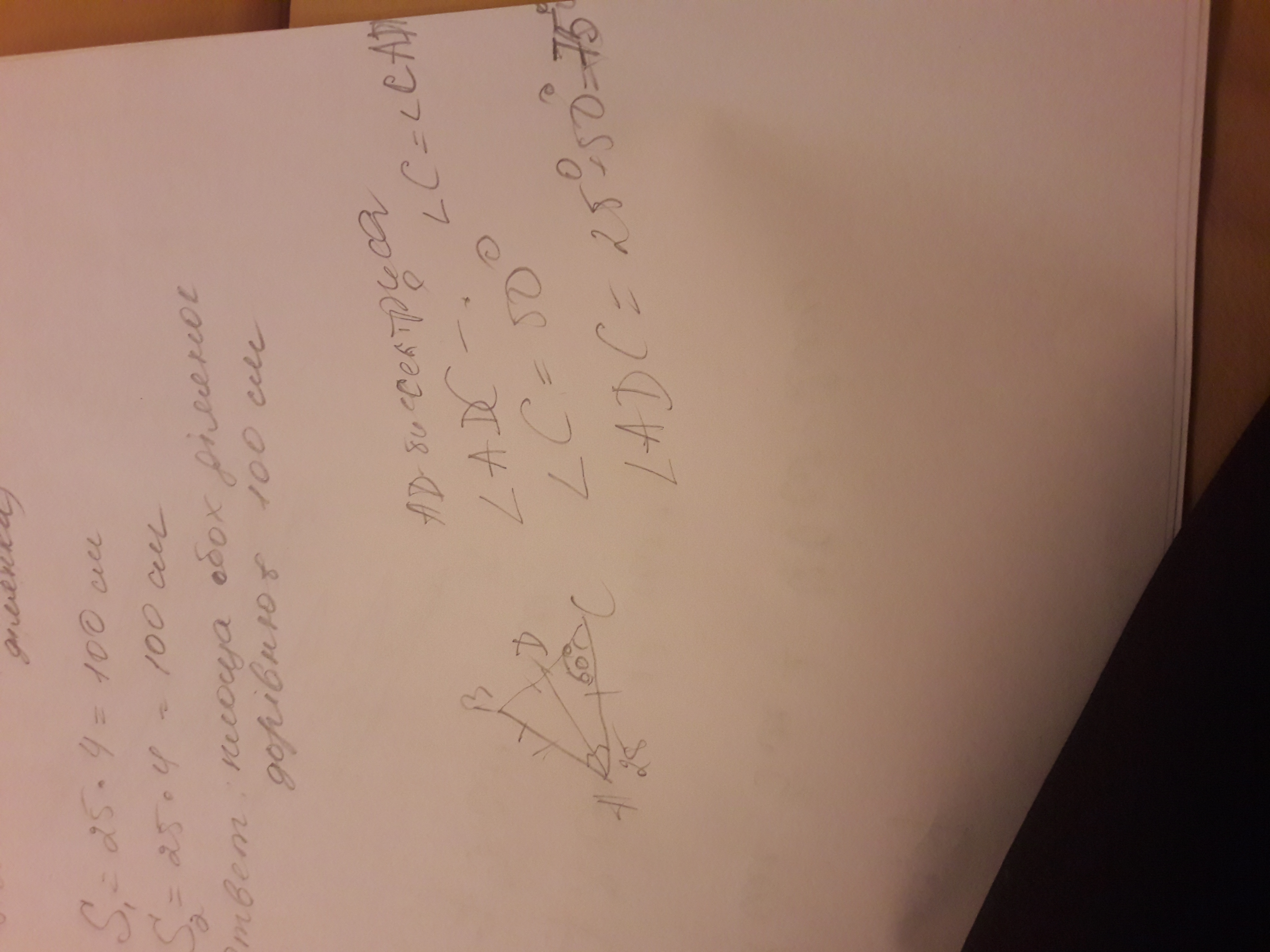 биссектриса разделила угол пополам. в равнобедренном тругольнике угли при основании равны 50÷2= 25