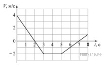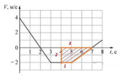 Точечное тело движется вдоль горизонтальной оси ОX. На рисунке представлен график зависимости проекции V скорости этого тела на ось OX от времени t. Определите путь, пройденный телом за интервал времени от 4 c до 7 с.