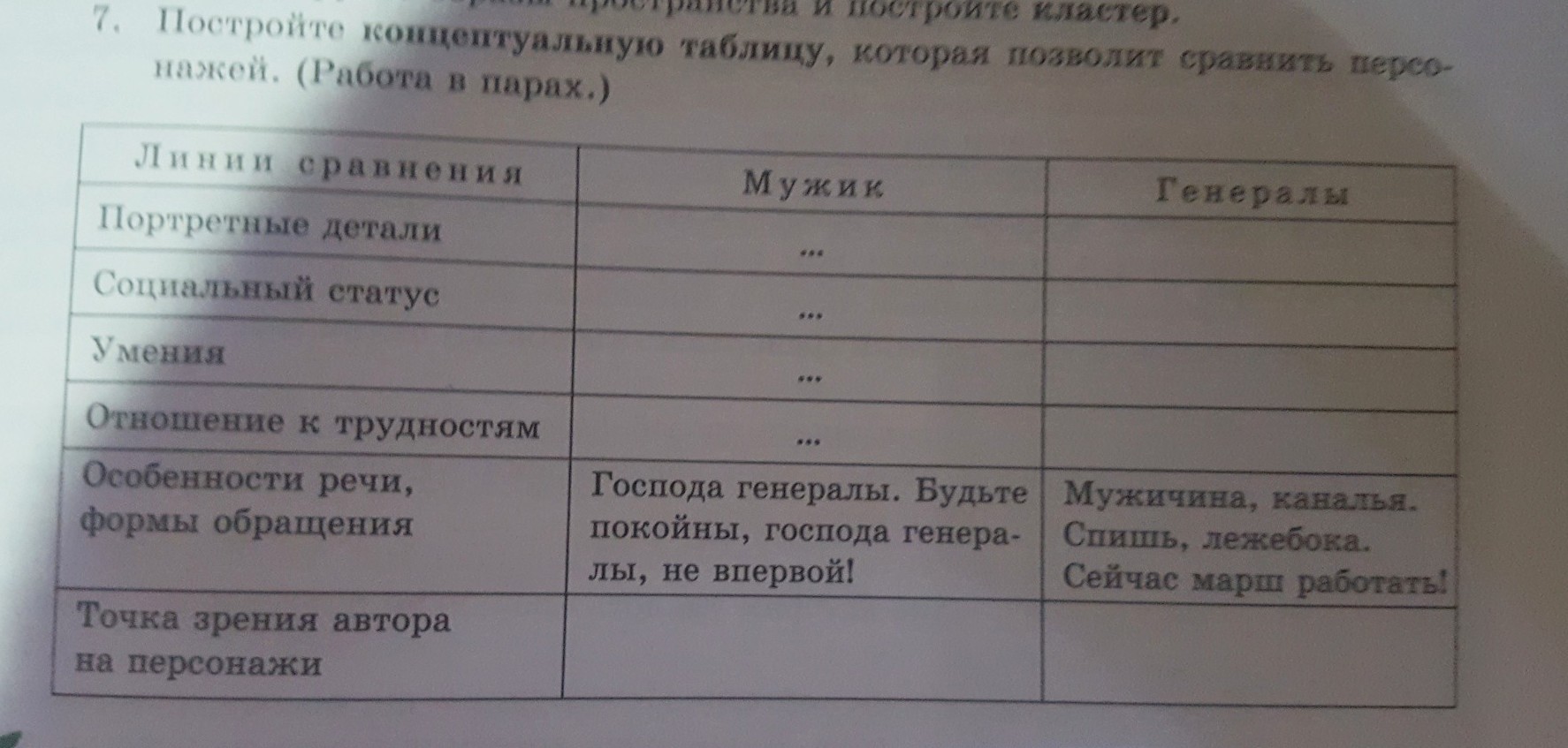 постройте концептуальную таблицу которая позволит сравнить персонажей из повести о топ как один мужик двух генералов прокормил