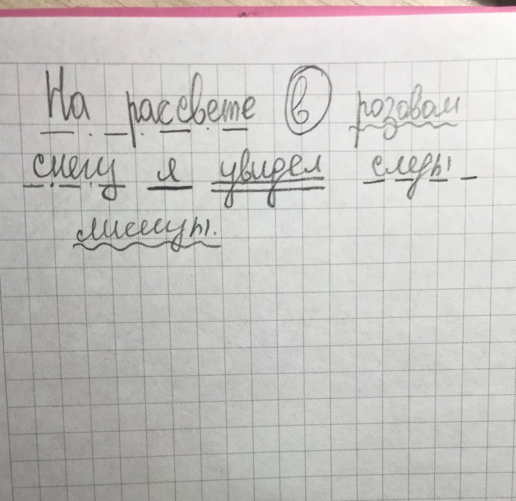 На рассвете в розовом снегу я увидел следы лисицы.