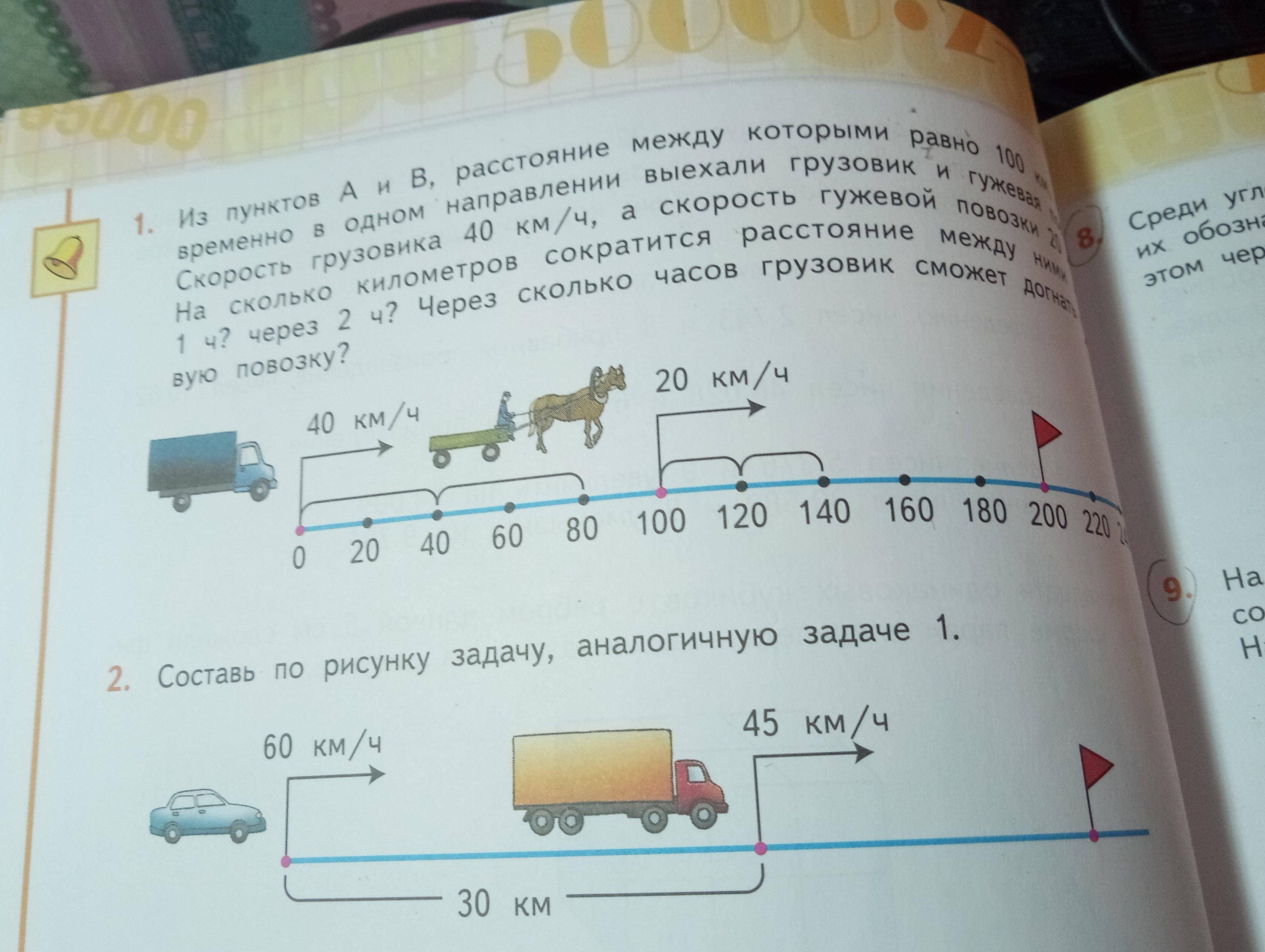 Из пунктов А и Б одновременно отправились машина и грузовик грузовик двигался со скоростью 45 км ч а автомобиль со скоростью 60 км ч Через сколько машина сможет догнать грузовик