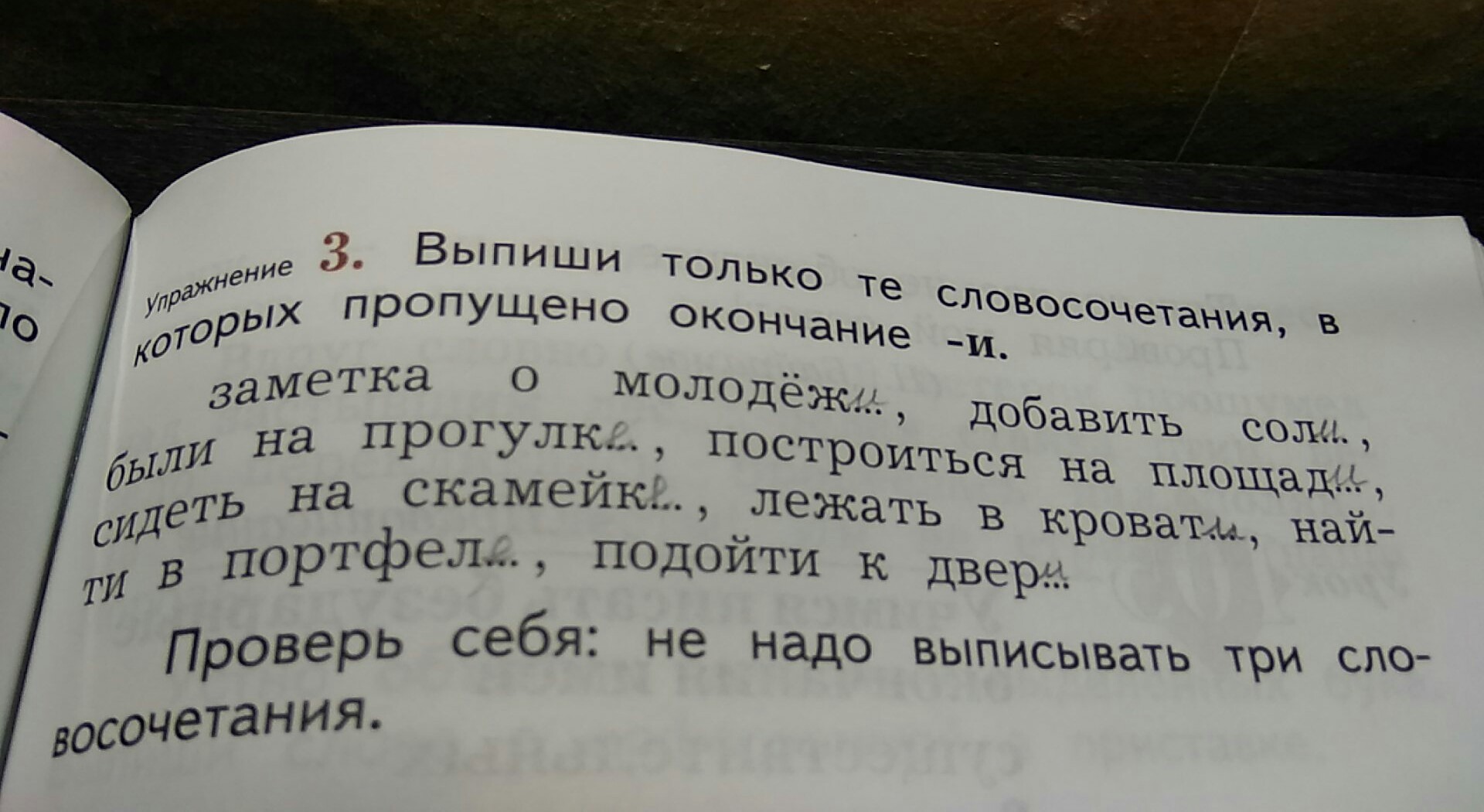 Заметка о молодёжИ , добавить солИ , построится на площадИ , лежать в кроватИ , подойти в дверИ. Всё? Так? Намас?