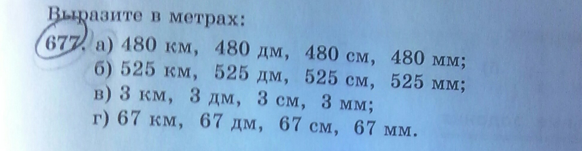 67км - 67000м, 67дм - 670м, 67см - 6700м, 67мм - 67000м.