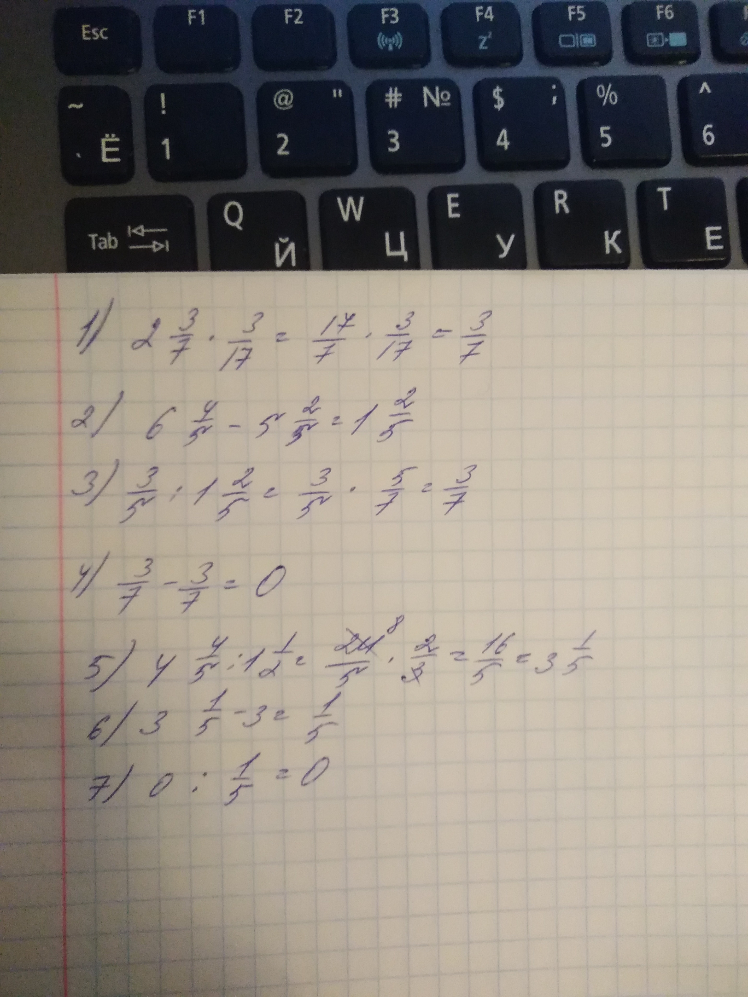 Помогите пожалуйста 2 3/7 • 3/17 - 3/5 : (6 4/5 - 5 2/5) черта дроби 4 4/5 : 1 1/2 - 3=