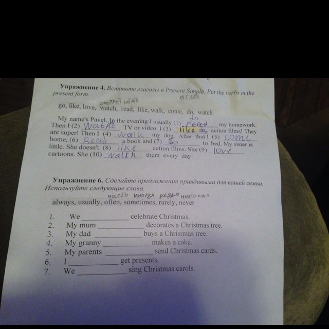 1. do 2. watch 3. like 4. walk 5. go 6. read 7. go 8. like 9. like 10. watches