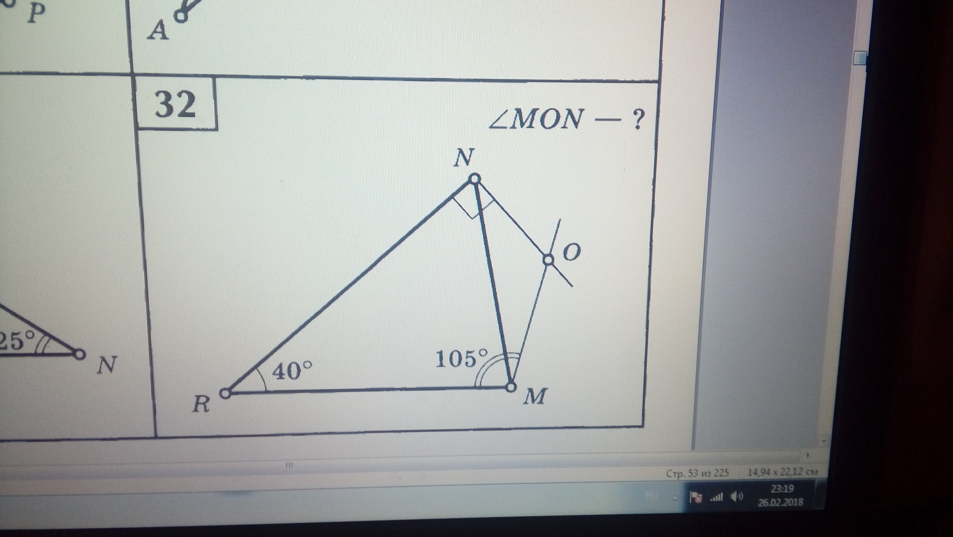 Если 105 градусов - это весь угол ОМR, то угол О будет равен: