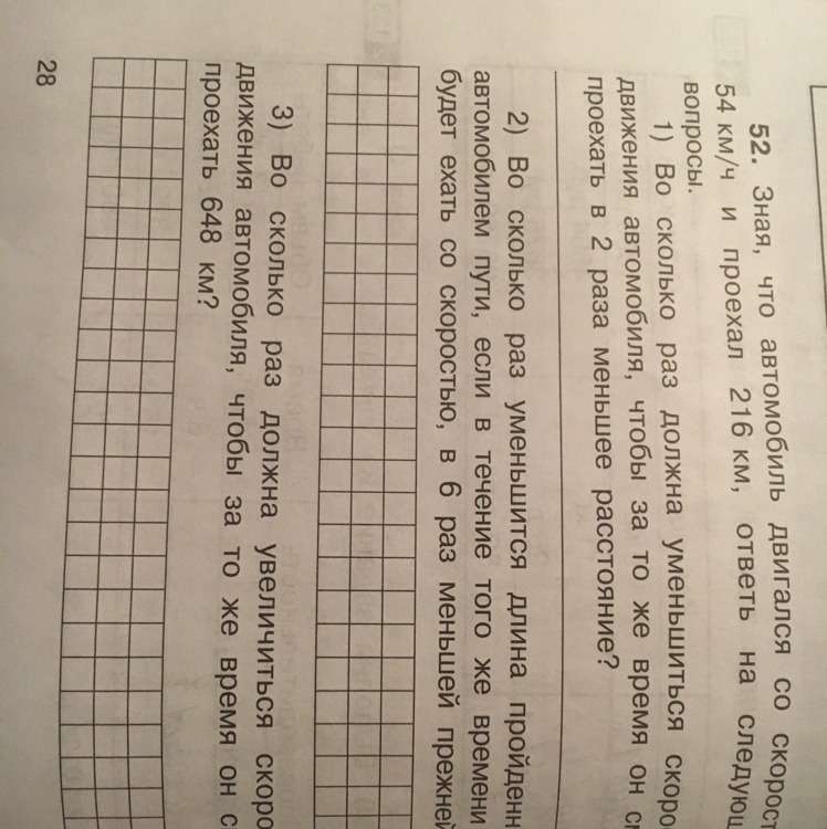 Автомобиль проехал 216 км со ск. 54 км/ч за время: 216:54=4 (ч)
