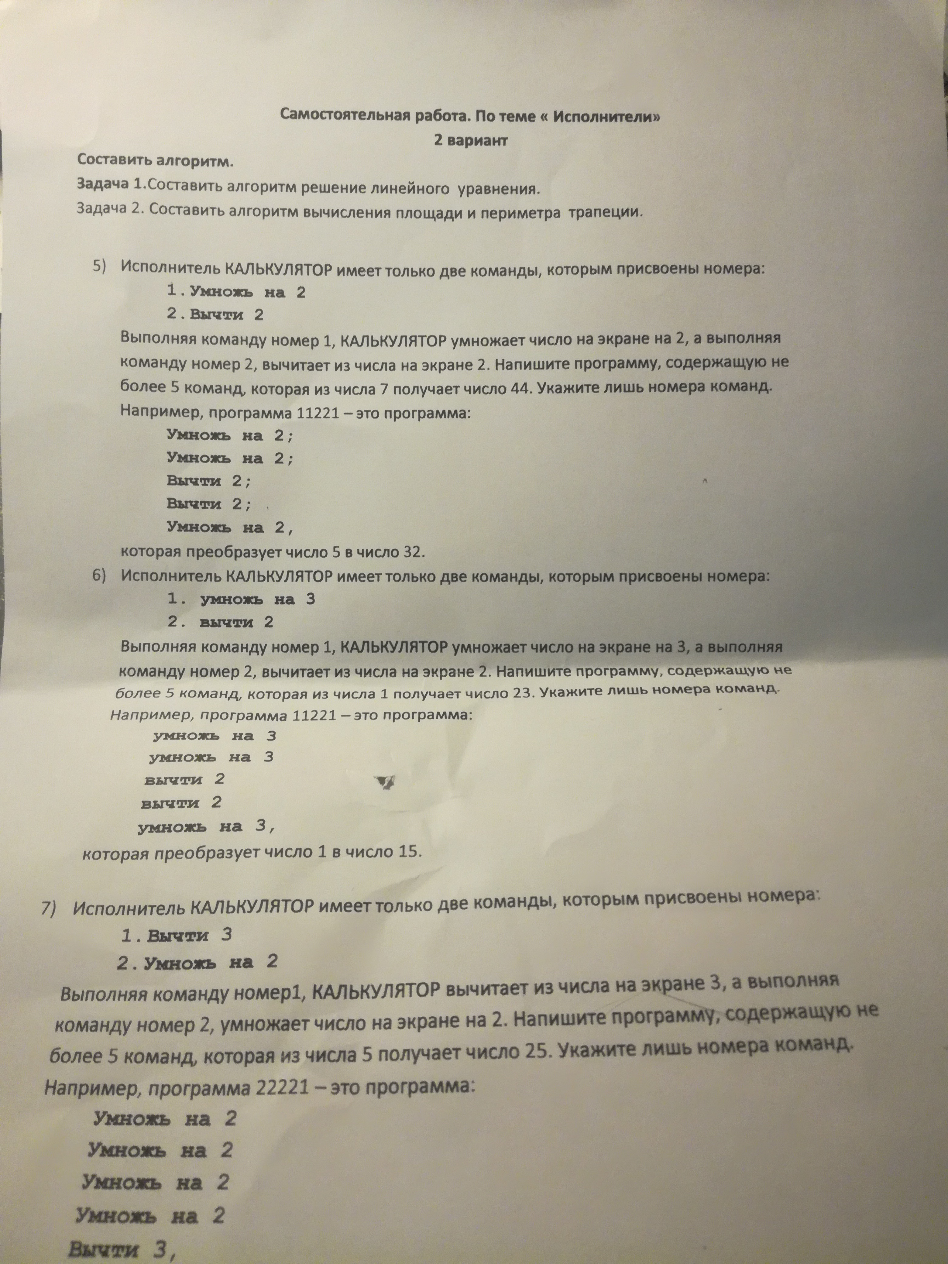 Решим задания наоборот: команды заменим на противоположные, числа из которых надо перевести - меняем местами, полученный алгоритм пишем снизу-вверх.