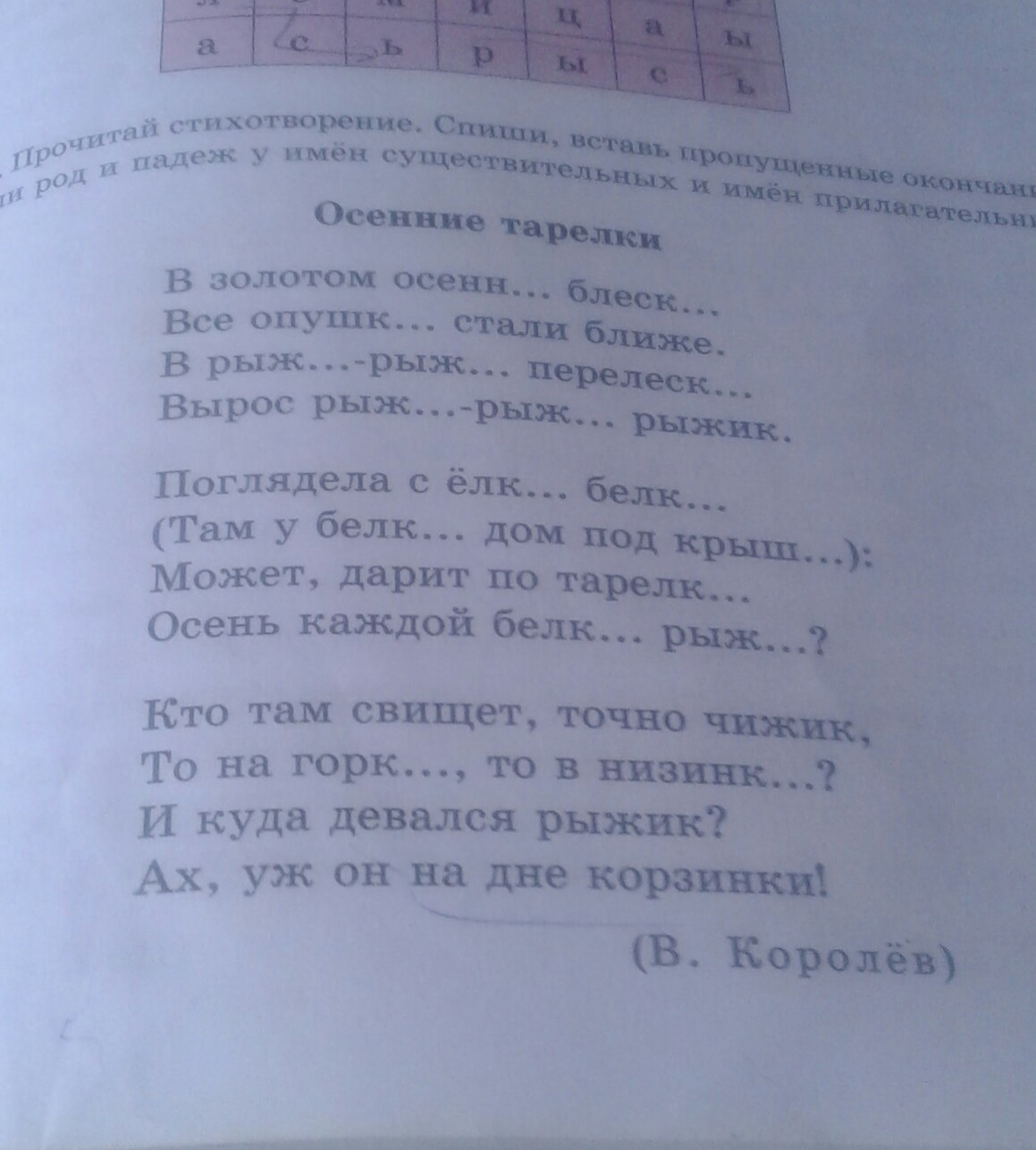 ребятушки миленький Помогите пожалуйста с русским языком я вам дам максимальное число баллов упражнение 503 Прочитай стихотворение Спиши вставь вставляя пропущенные окончания Определи род и падеж у имён существительных и имён прилагательных Ребята пожалуйста можете помочь но сама не могу честно
