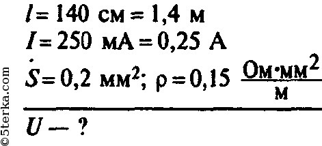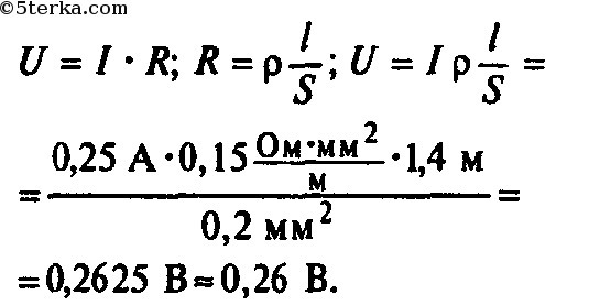 0.1 Ом*мм^2/м, если его длина 3м, поперечное сечение 0,05 мм^2 , а сила тока в нем 0.5 А.