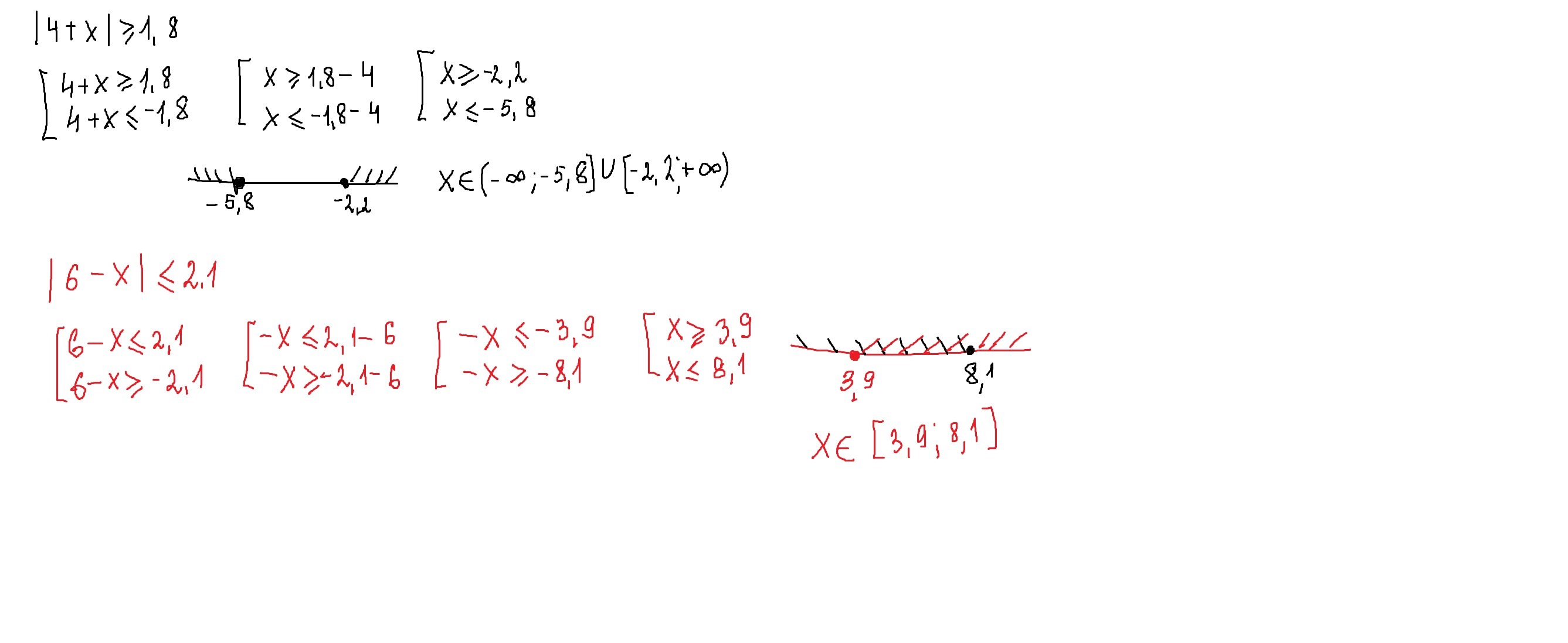 помогите модуль 4+х модуль меньше или ровно 1,8