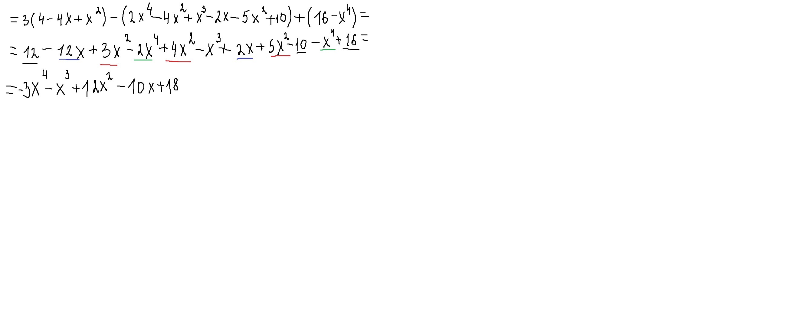 3(2-x)²-(2x²+x-5)(x²-2)+(x²+4)(4-x²)