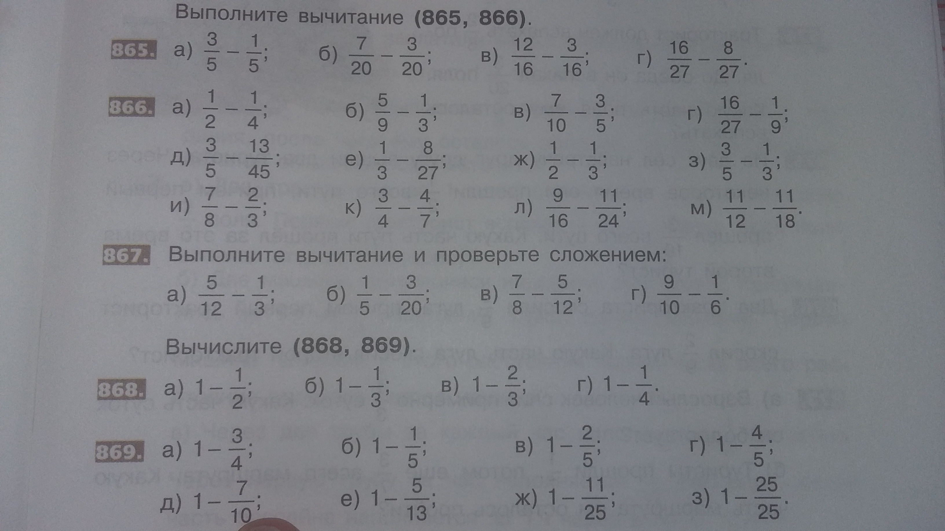 А)5/12-4/12=1/12(1/12+4/12=5/12) б)1/5-3/20=4/20-3/20=1/20(1/20+3/20=4/20. В)7/8-5/12=21/24-10/24=11/24(11/24+10/24=21/24). Г)9/10-1/6=27/30-5/30=22/30(22/30+5/30=27/30