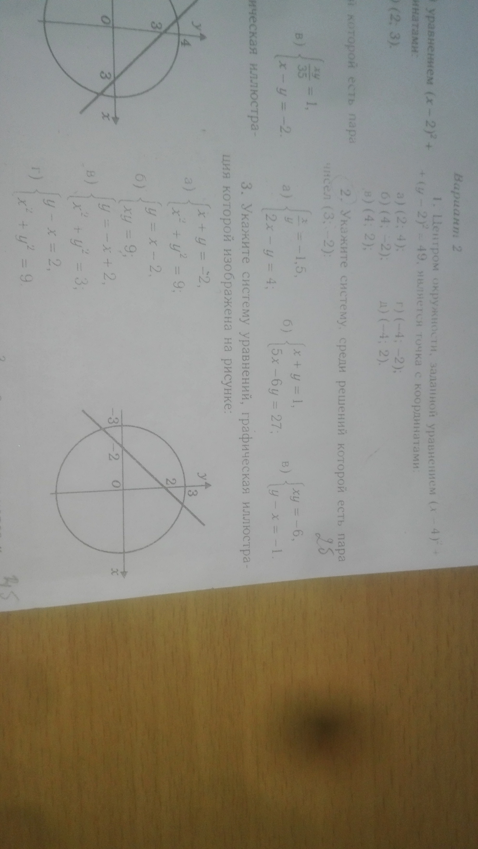1в) (х-4)²+(у-2)²=49 , центр (4,2) , R=7