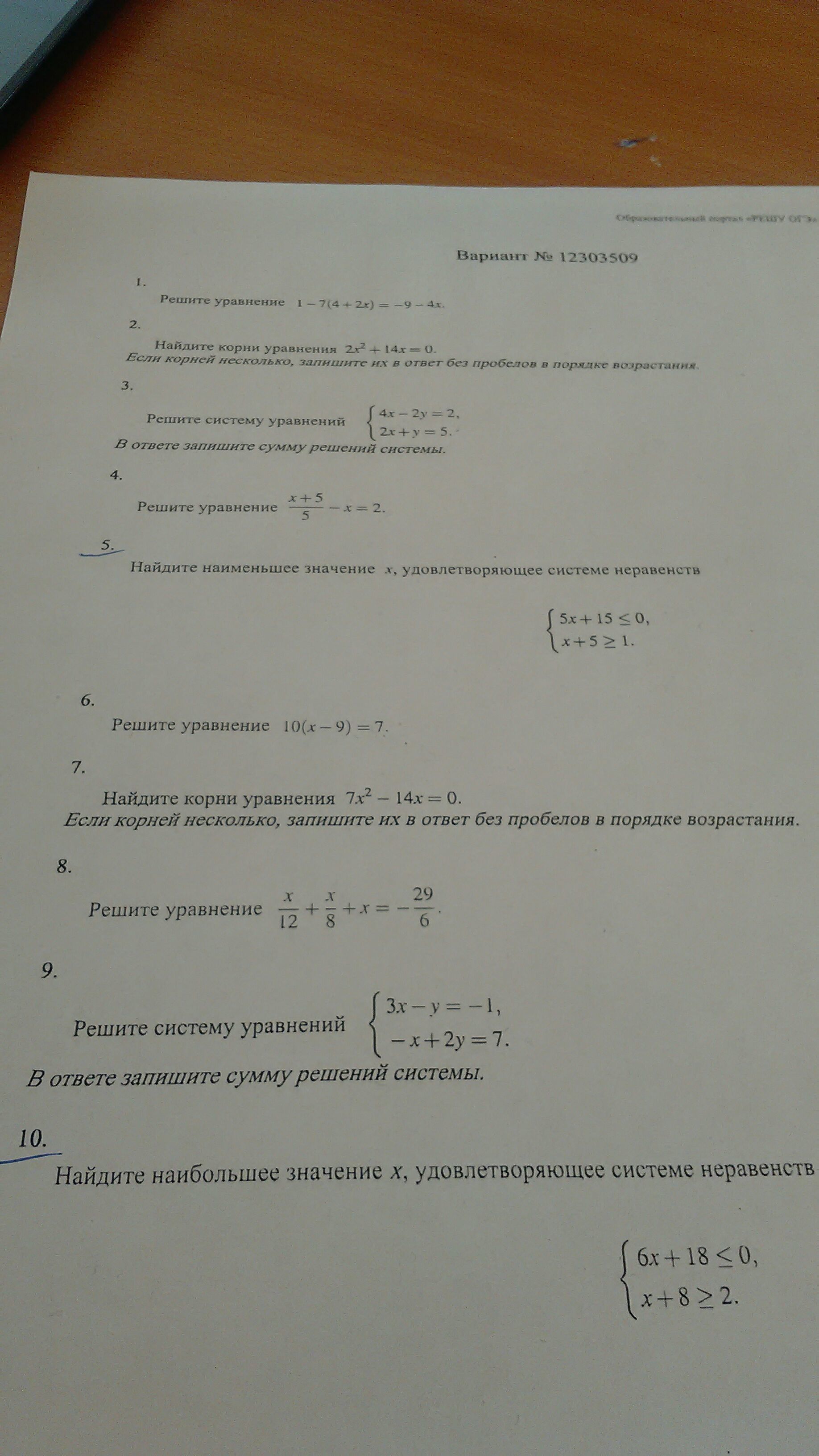 2). 2x^2+14x=0; 2x*(x+7)=0; 2x=0 или x+7=0. x1=0/2=0, x2= -7. Ответ x1= -7, x2=0. 9). y=3x+1. подставляем во 2 уравнение: -x+2*(3x+1)=7; -x+6x+2=7; -x+6x=7-2; 5x=5; x=5/5=1. y=3*1+1=3=1=4. Ответ: x+y=1+4=5.