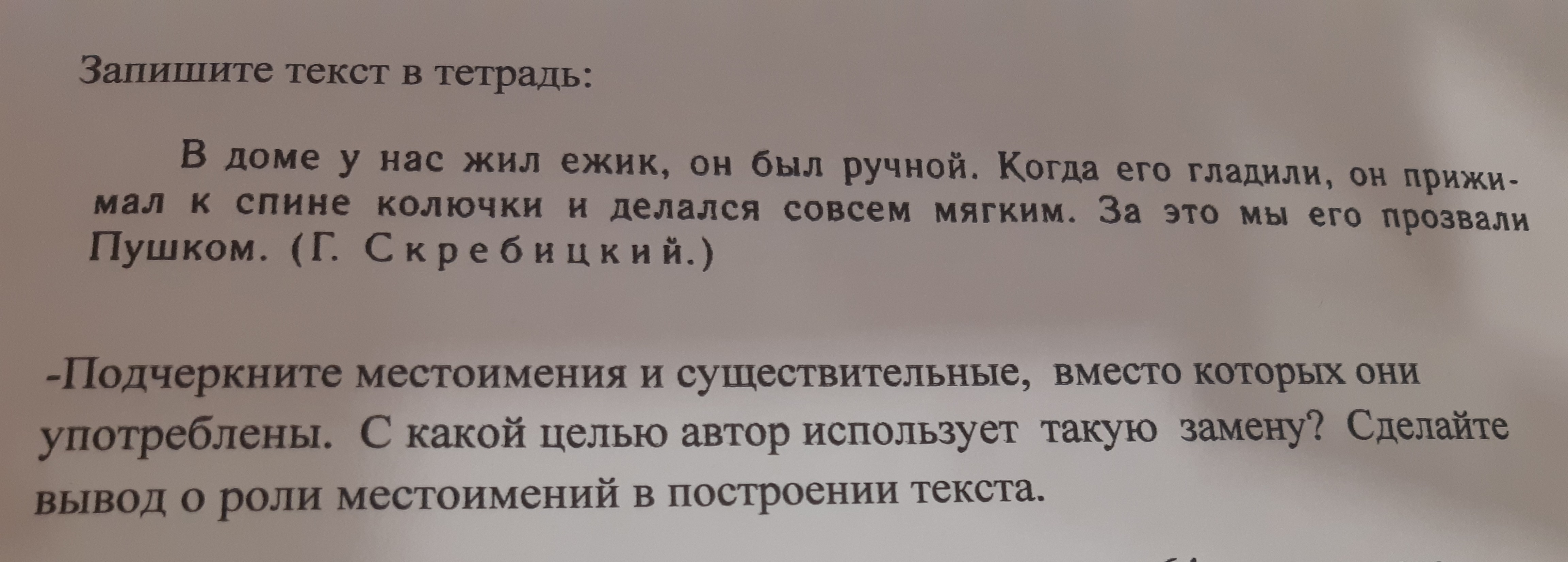 местоим: нас, он (к сущ. ёжик), его (к сущ. ёжик), он(к сущ. ёжик), мы, его(к сущ. ёжик).