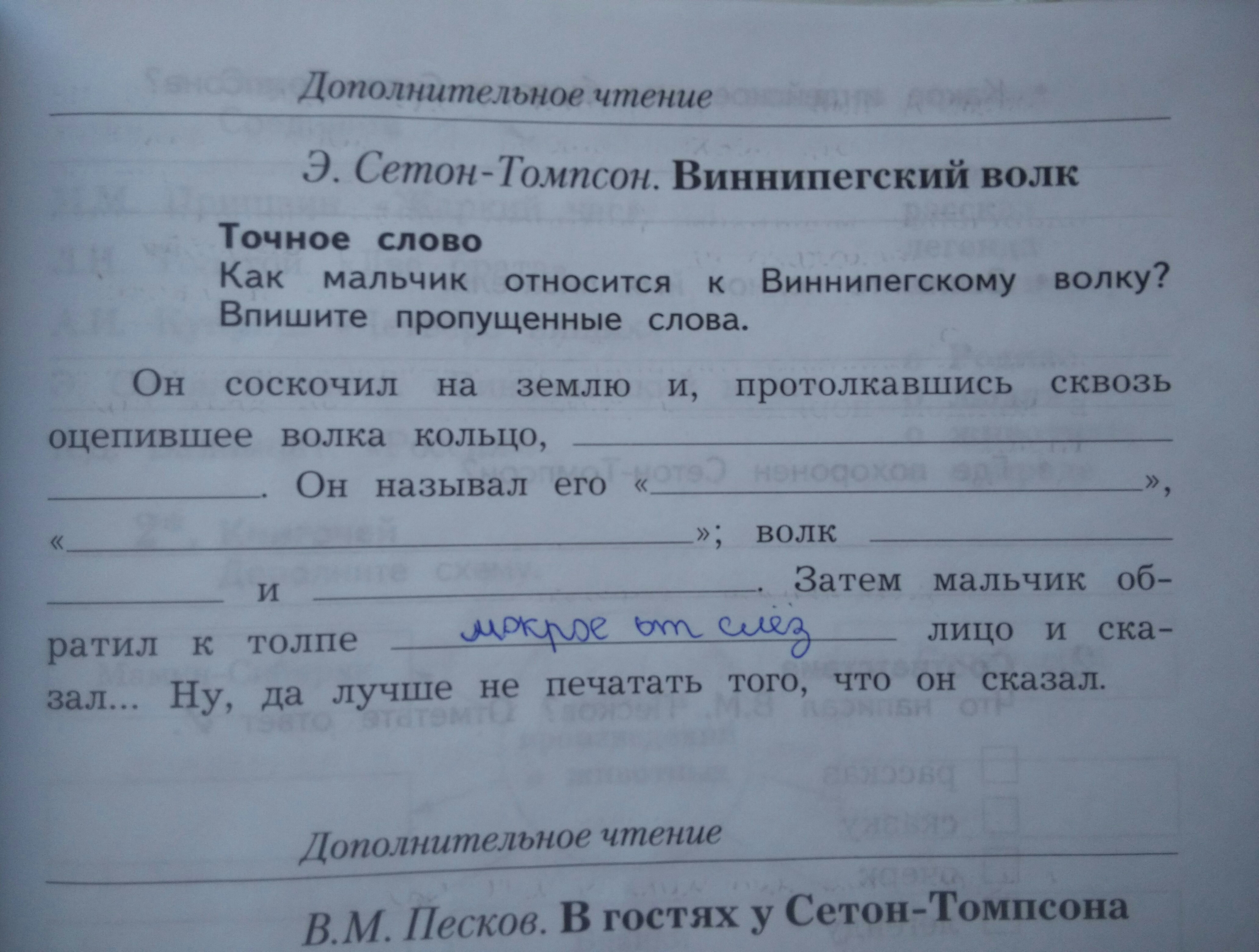 Он соскочил на землю и, протолкавшись сквозь оцепившее волка кольцо, обхватил его шею руками. Он называл его «милым волчком», «дорогим волчишкой»; волк лизал ему лицо и махал хвостом. Затем мальчик обратил к толпе мокрое от слез лицо и сказал... Ну, да лучше не печатать того, что он сказал.