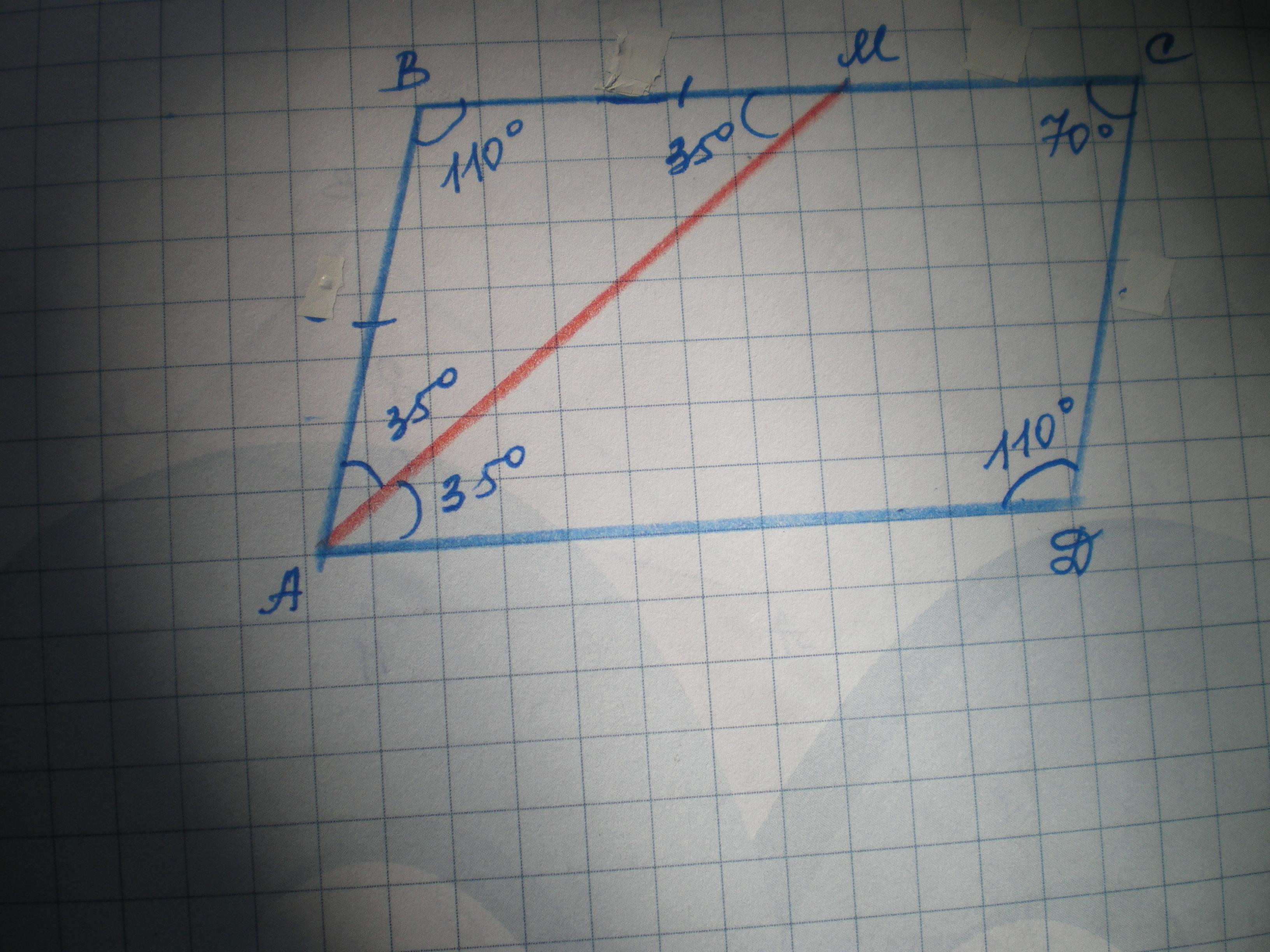 ∠В=180-∠АМВ-∠ВАМ=180-35-35=110°; ∠Д=∠В=110°