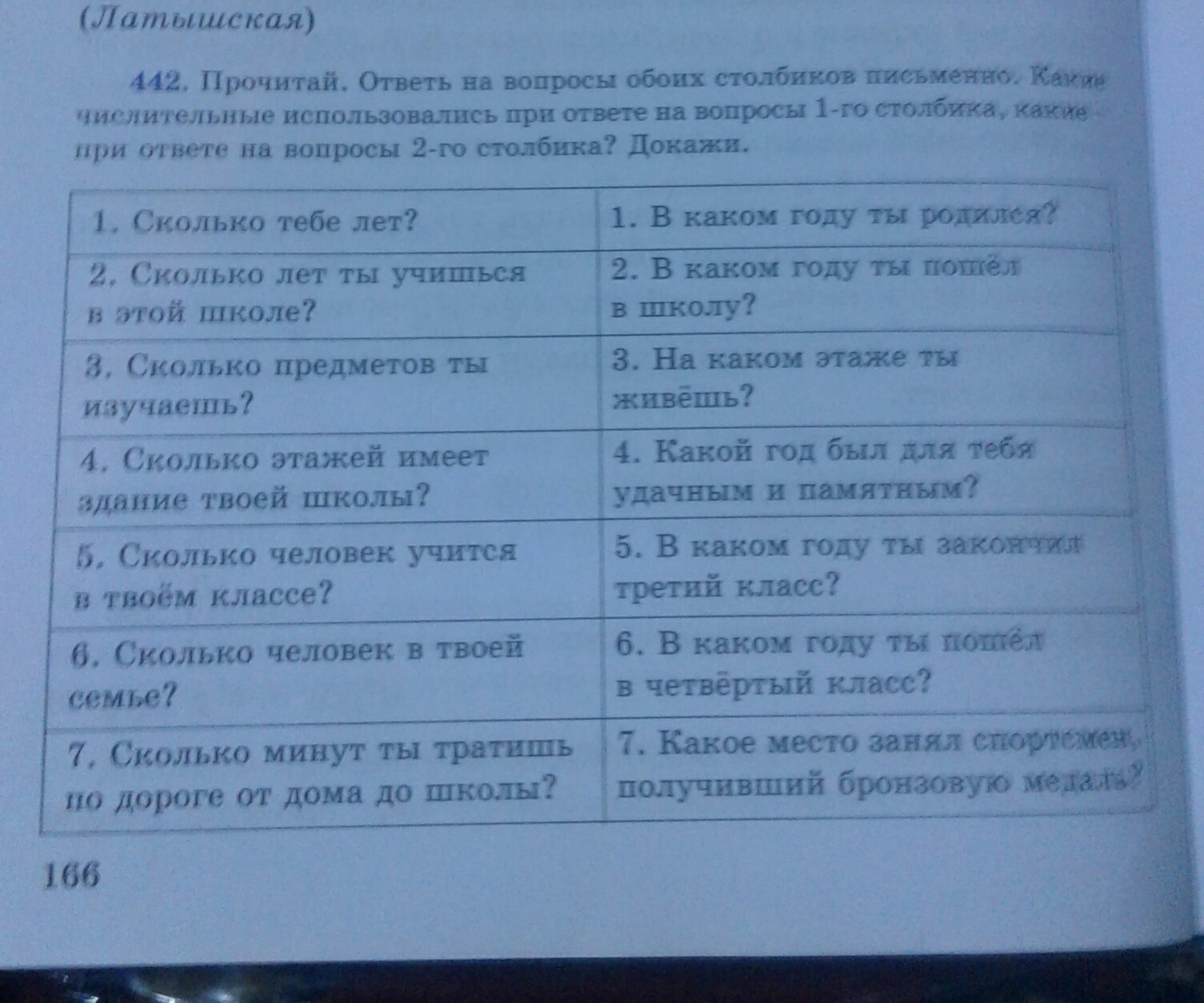 Прочитай и ответь на вопросы обоих столбиков письменно Какие числительные использовались При ответе на вопросы первого столбика Какие при ответили на вопросы второго столбика
