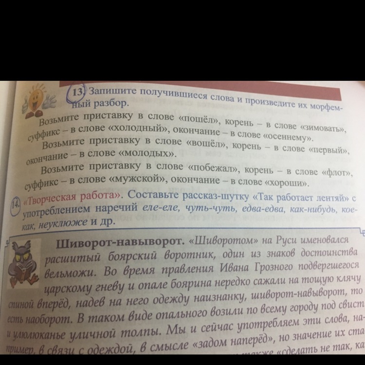 Мама сказала мне сделать все уроки, и я еле-еле дотянулся до портфеля. Мне было чуть-чуть лень. Я едва-едва докатался ручки листка бумаги. В итоге как нибудь да кое-как я написал, но мама меня напугала, потому что было всё неуклюжи написано.