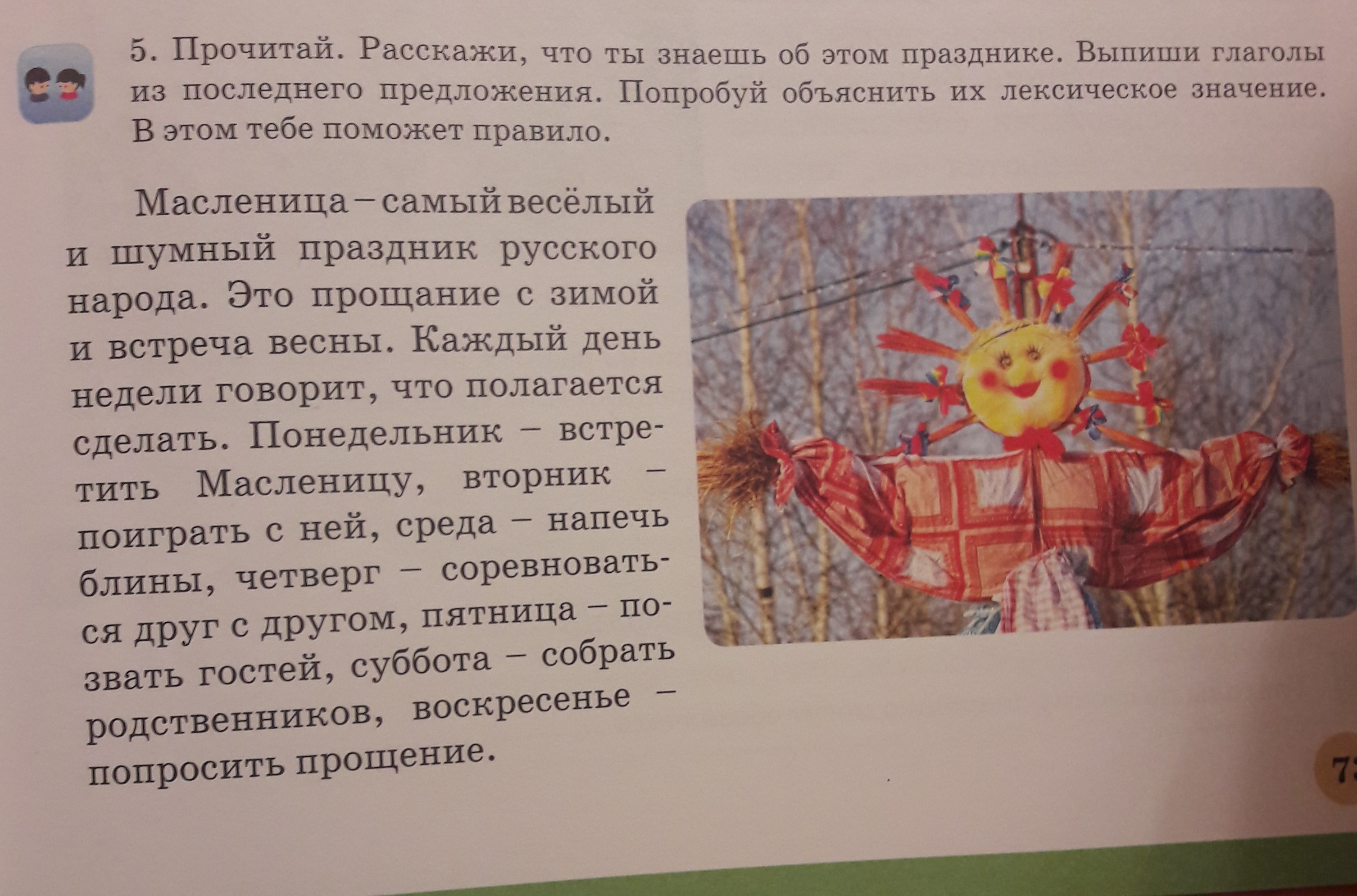 Глаголы-встретить,поиграть,напечь, соревноваться,позвать,собрать,попросить.