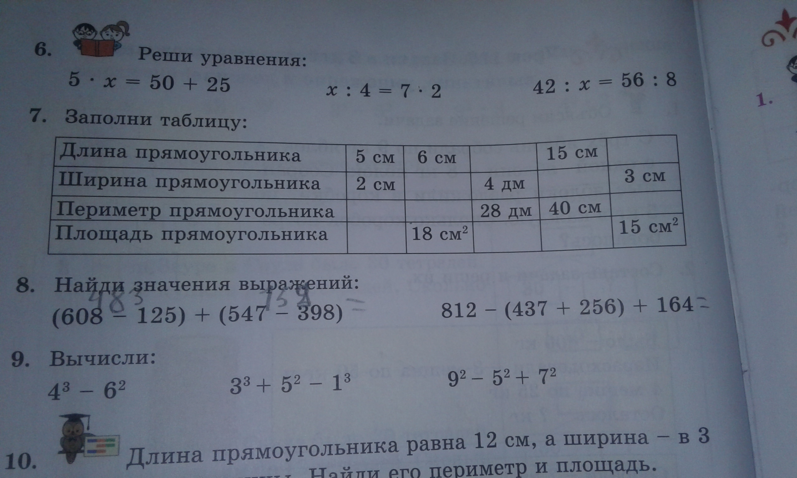 длина прямоугольника 5см 6см 10дм 15см 5см
