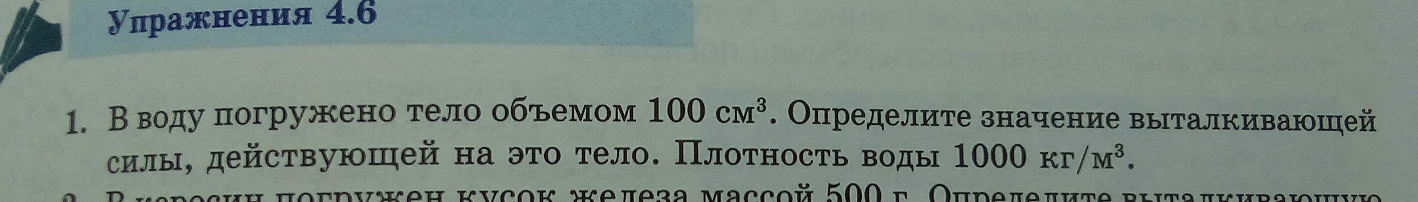в воду погружено Тело объемом 100 см в кубе Определите значение выталкивающей силы, действующей на это тело плотность воды 100 кг метров кубических