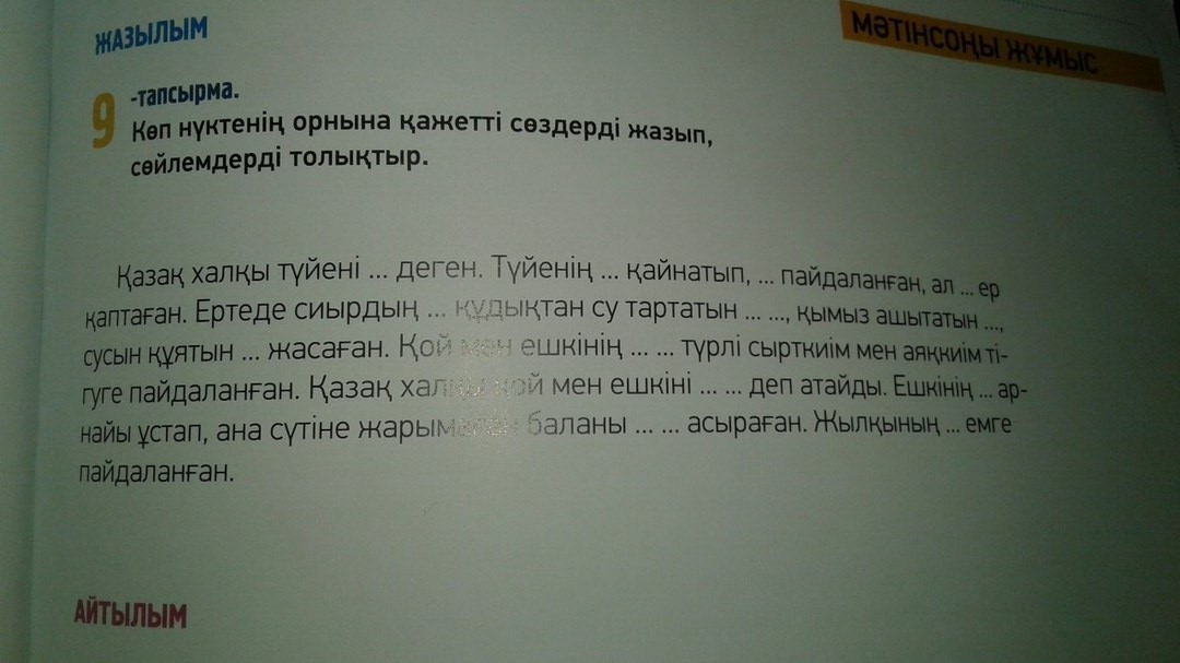 Это всё есть в 4 тапсырма где текст там и найди у нас тоже такое было задание!