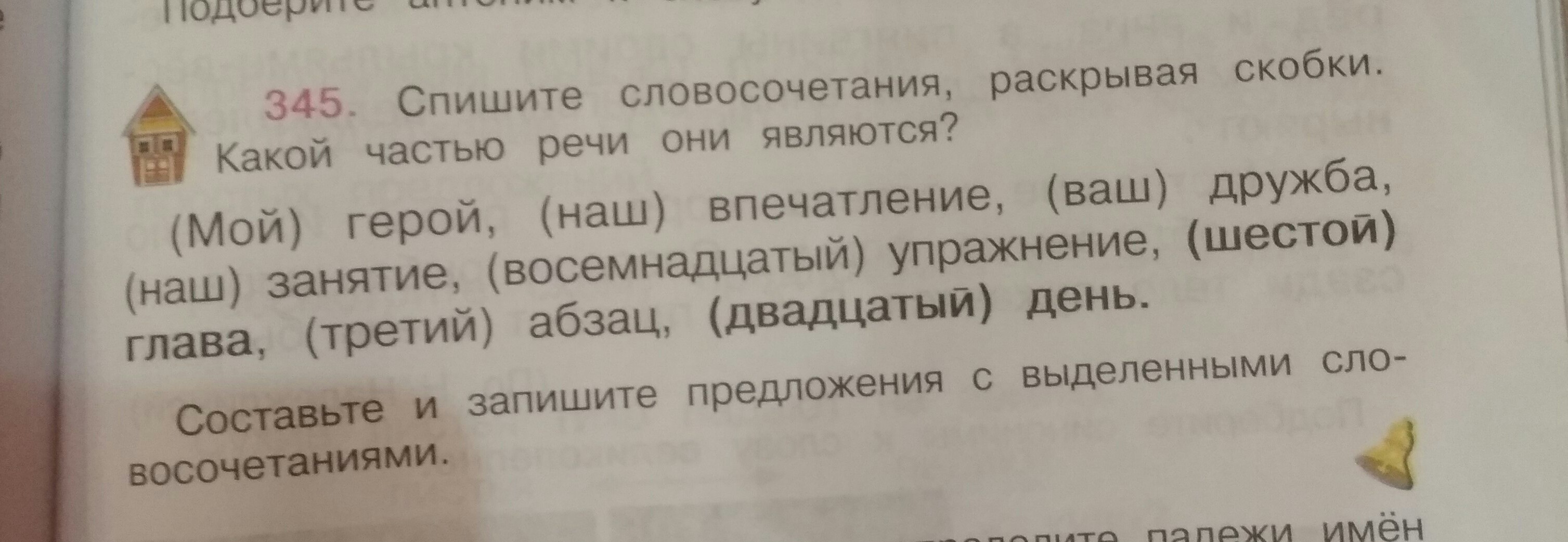 мой герой, наше впечатление, ваша дружба, наше занятие, восемнадцатое упражнение, шестая глава, третий абзац, двадцатый день.