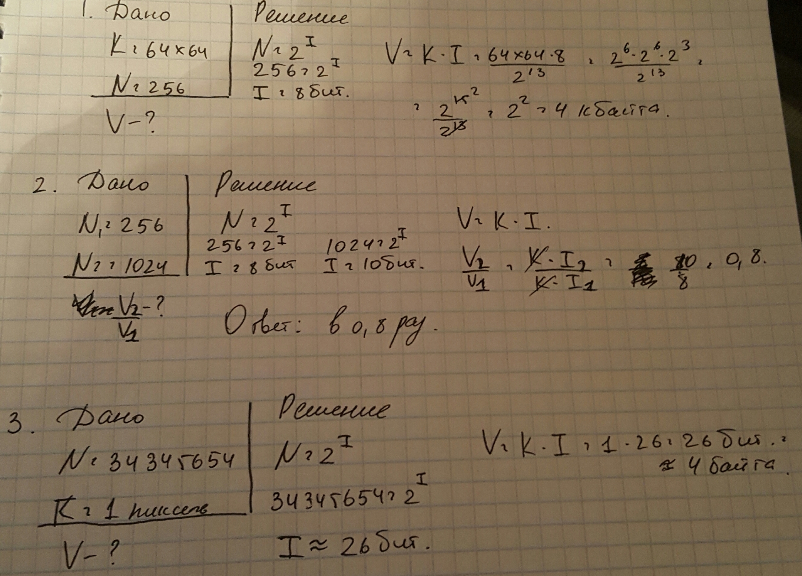 2) В процессе преобразования растрового графического файла количество цветов увеличили с 256 до 1 024. Во сколько раз увеличился информационный объем файла?