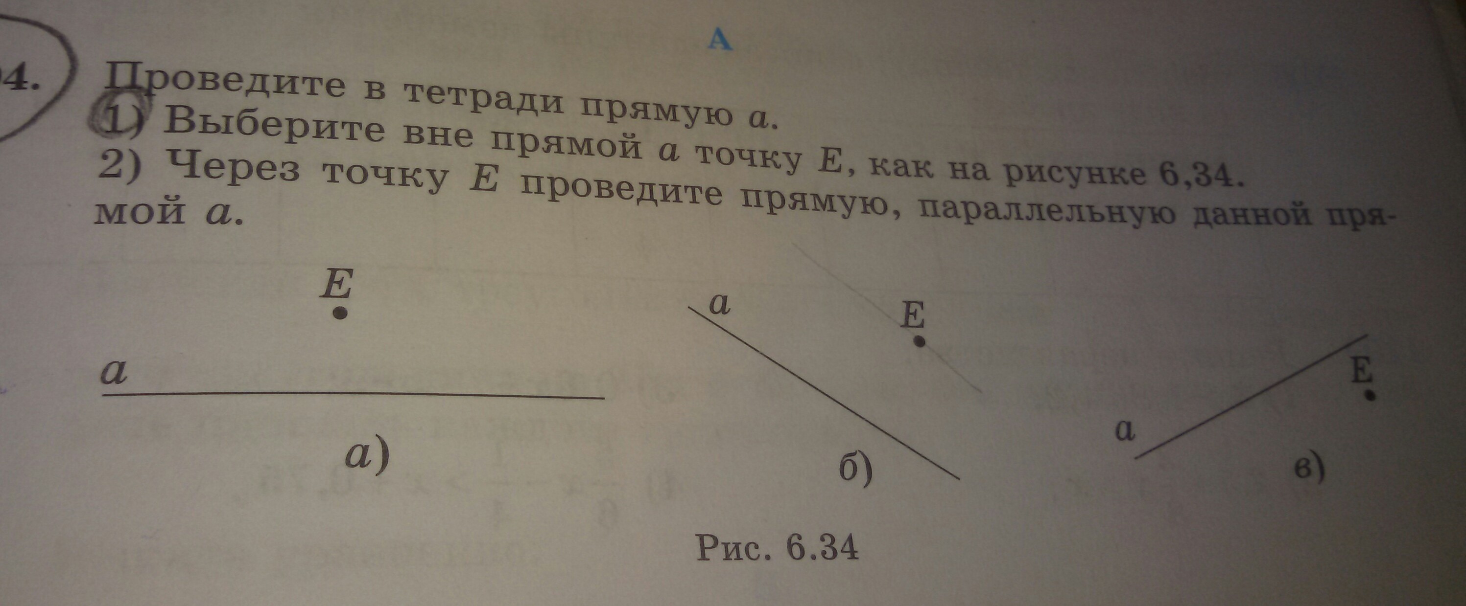 я нарисовала одну линию а.Над ней надо нарисовать другую такую же только на таком расстоянии где одозначена точка Е