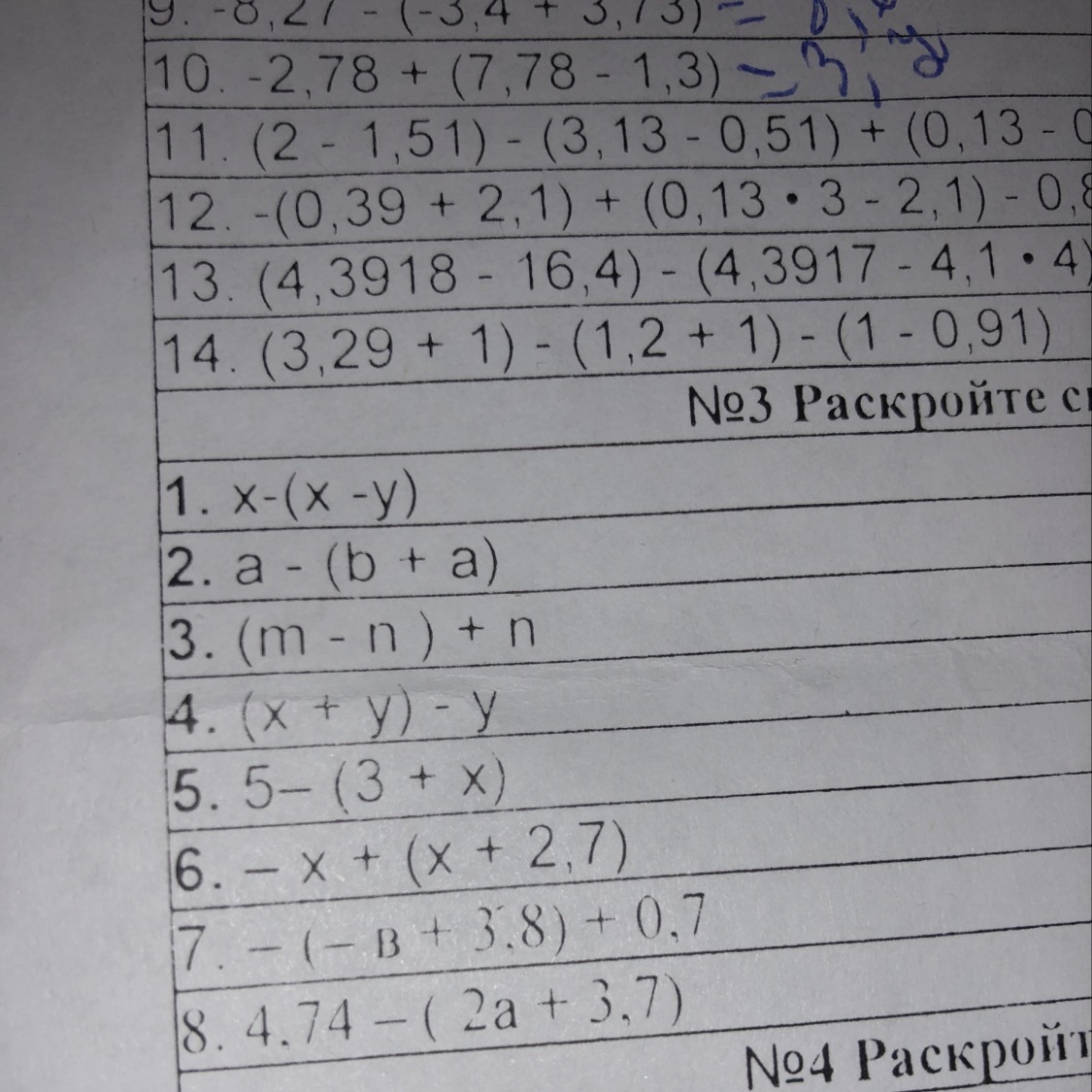 8. 4.74 - ( 2a + 3.7 ) = 4.74 - 2a - 3.7