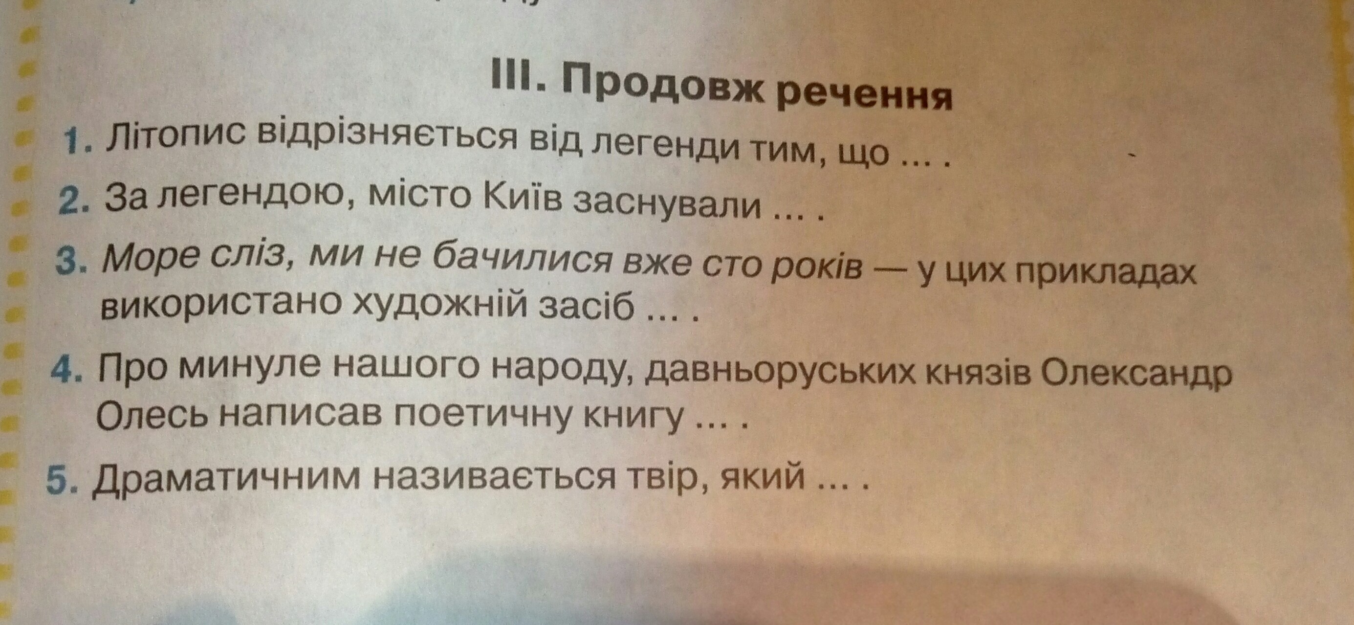 5. описує сумні події