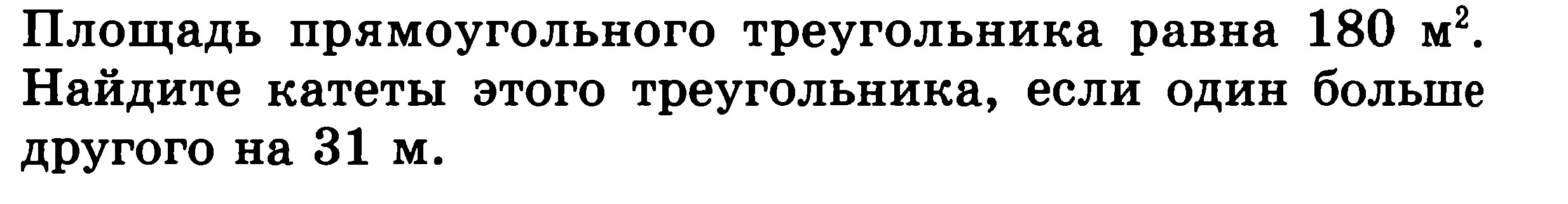 Формула нахождения площади прямоугольного треугольника 1/2• а • b (a,b - катеты). Мы выражаем один катет, как сумму второго катета и 31