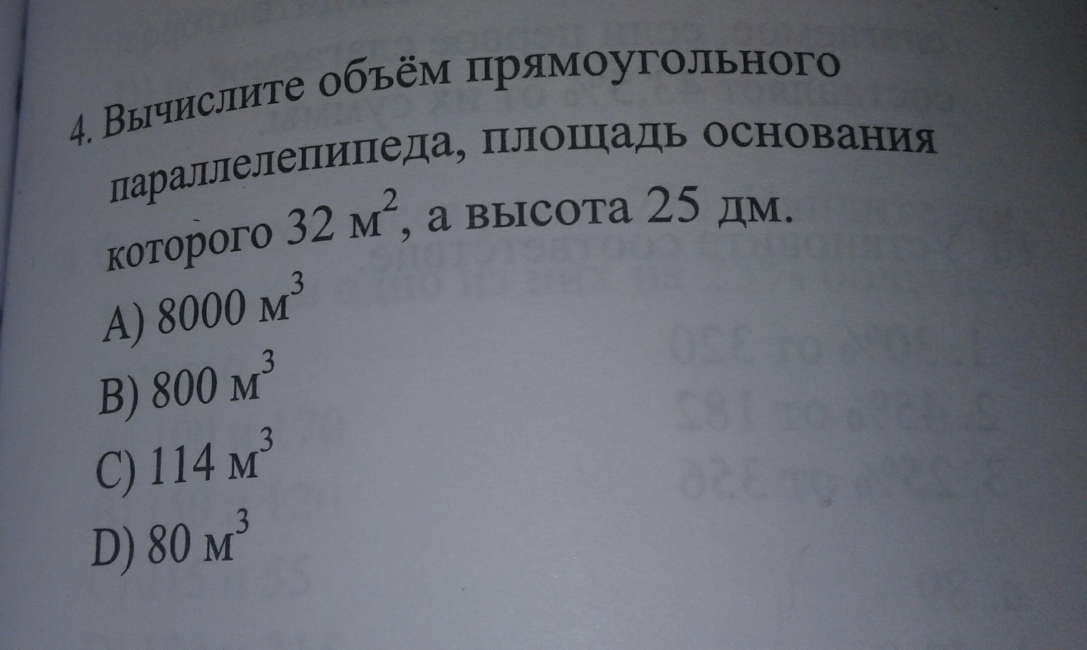Объем равен произведению высоты на площадь основания, т.е. 32м^2*2.5м=80 м^3