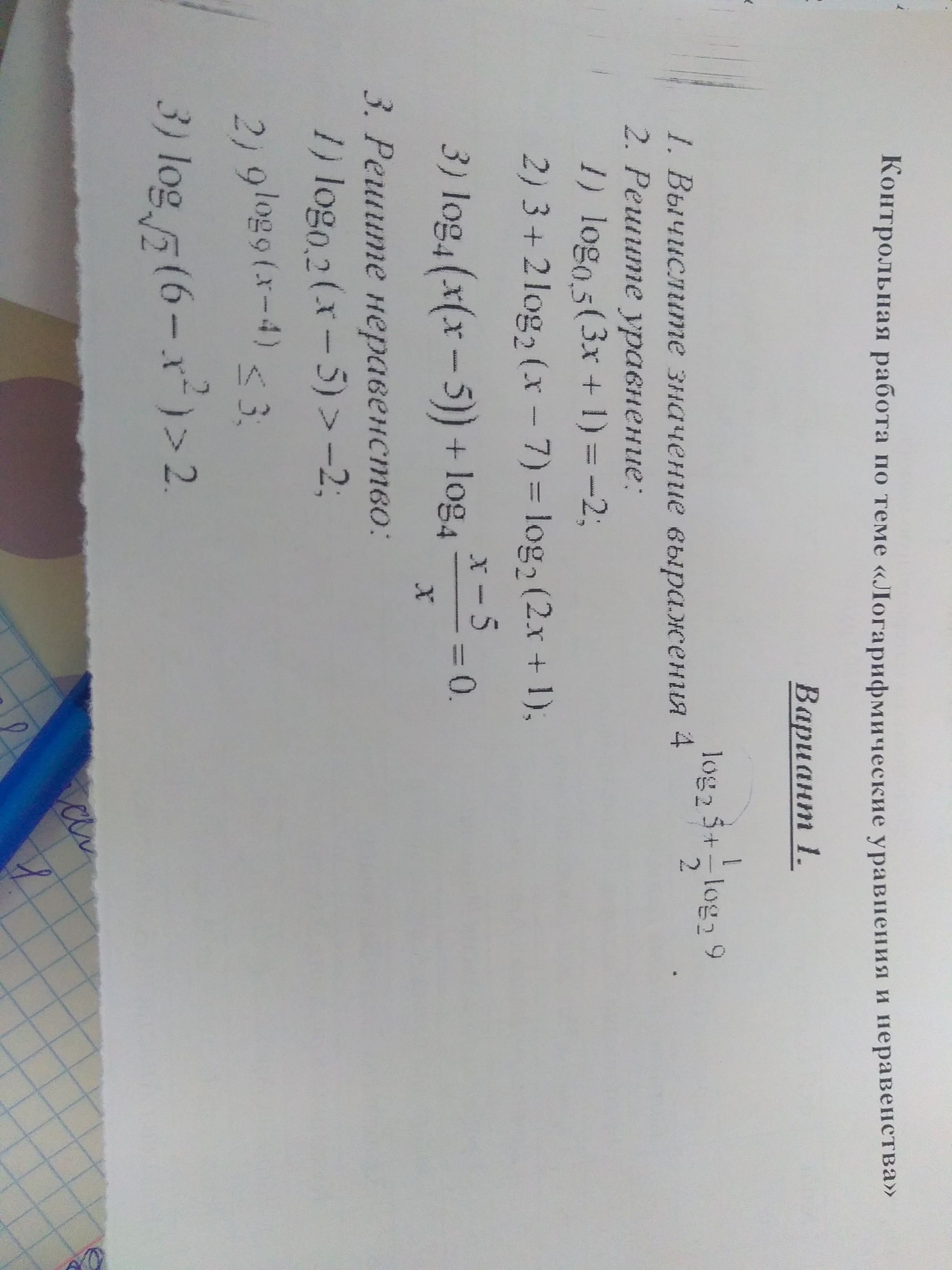 Логарифмические уравнения и неравенства