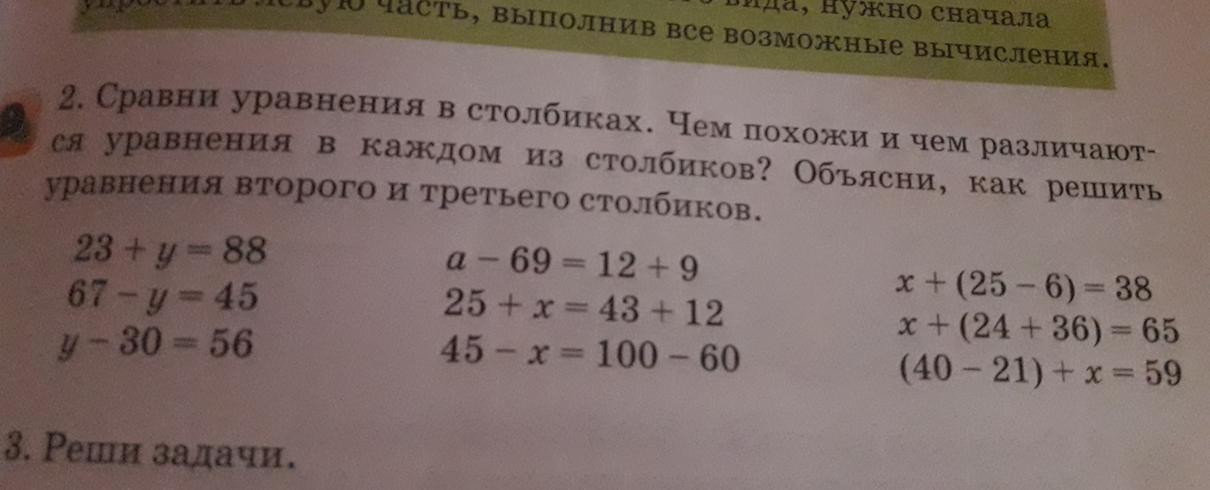 уравнения в столбиках чем похожи и чем различаются уравнения в каждом из столбиков объясни как решить уравнение 2 и 3 столбиков