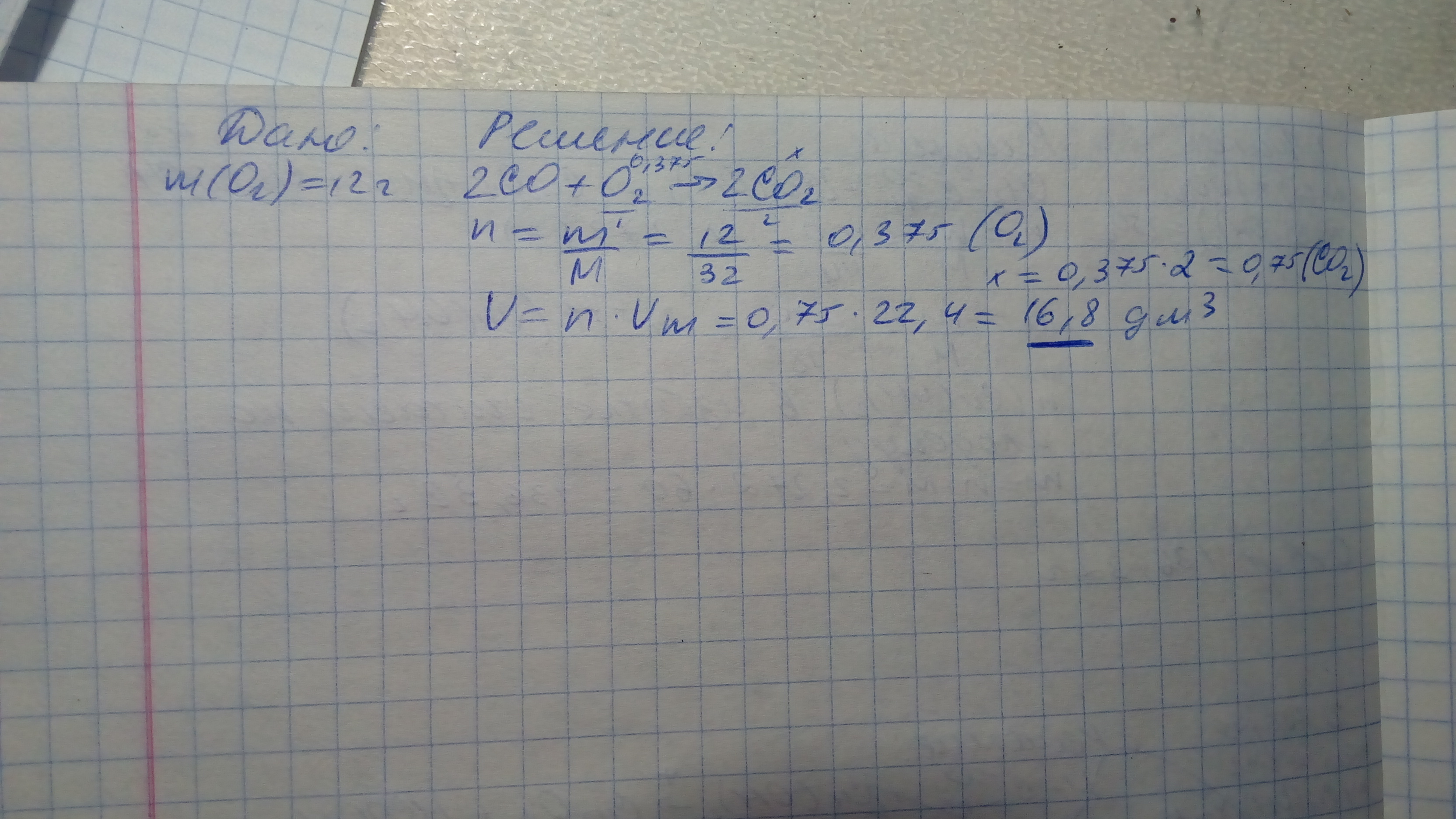 1) какой объем оксида углерода (IV) образуется при взаимодействии оксида. Углерода (II) и 12 г кислорода