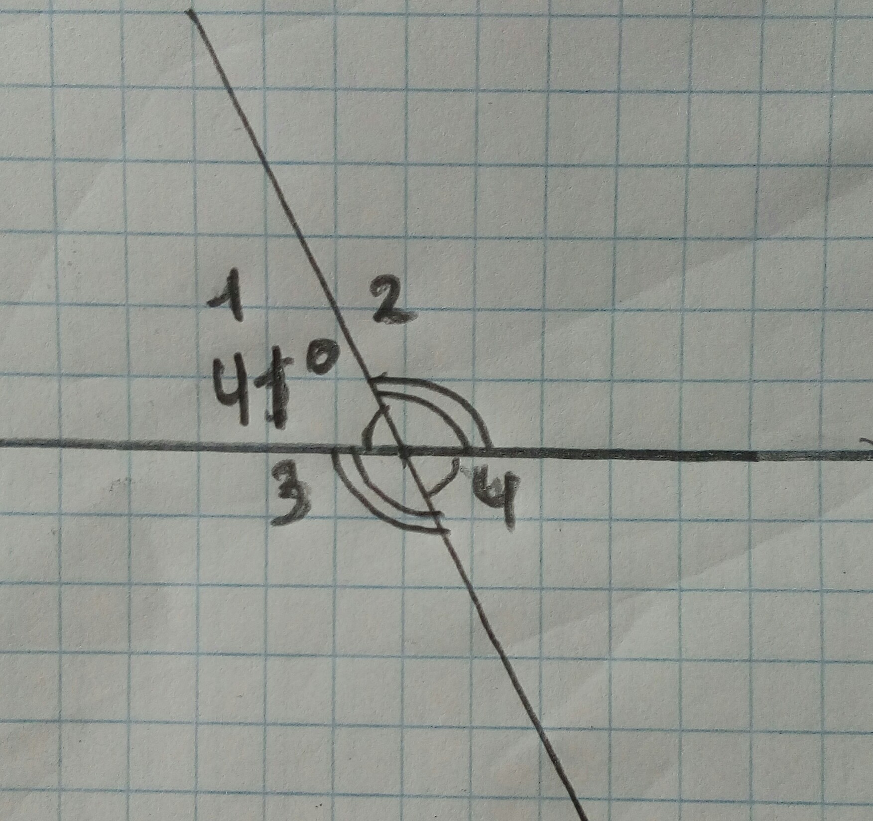 Так как углы 1,2,3,4 являются вертикальными то угол 4 = 41°; а угол 3 = 139°