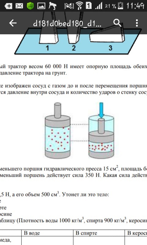 . На рисунке изображен сосуд с газом до и после перемещения поршня вниз. Опишите