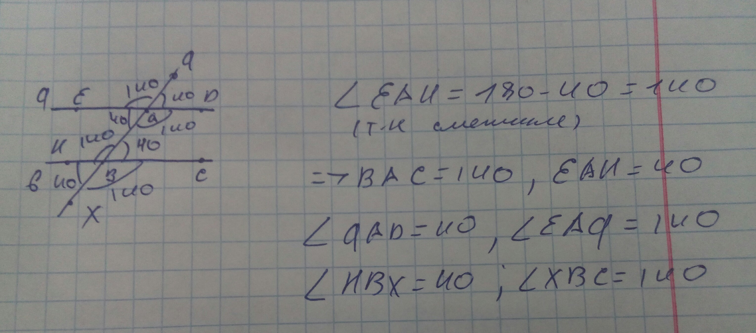 EAH=180-40=140. BAC=140, EAH=40,QAD=40,EAQ=140,HBX=40,XBC 140