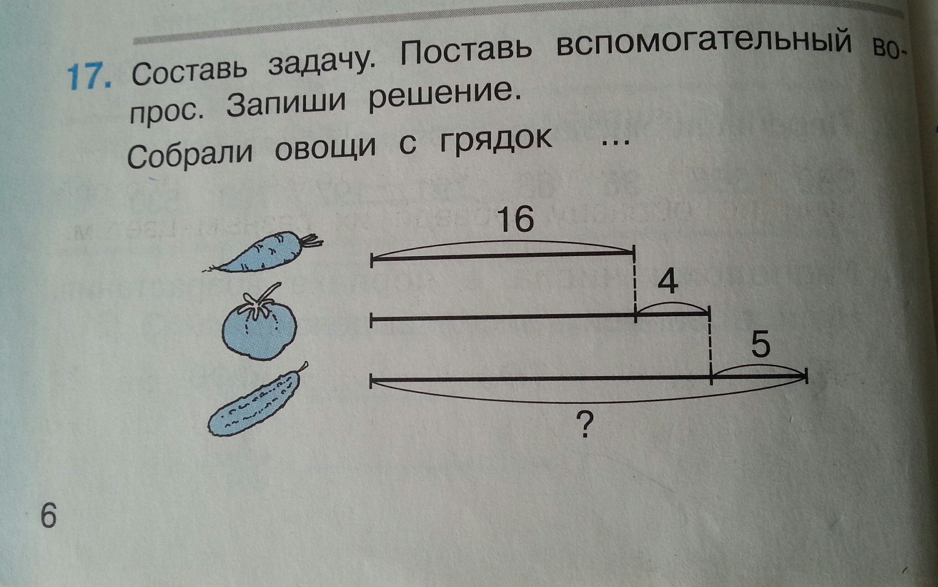 Составь задачу. Поставь вспомогательный вопрос. Запиши решение.Собрали овощи с грядок...
