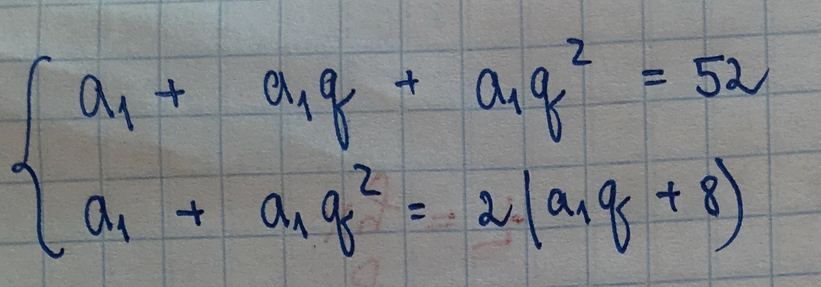 a1+a1q^2=52-a1q из первргр и подставлю во второе