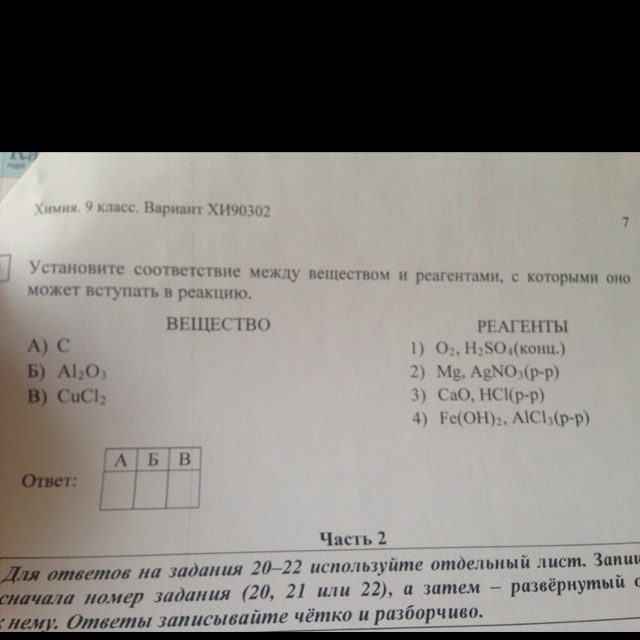 Установите соответствие между веществом и реагентами с которыми оно может вступать в реакцию