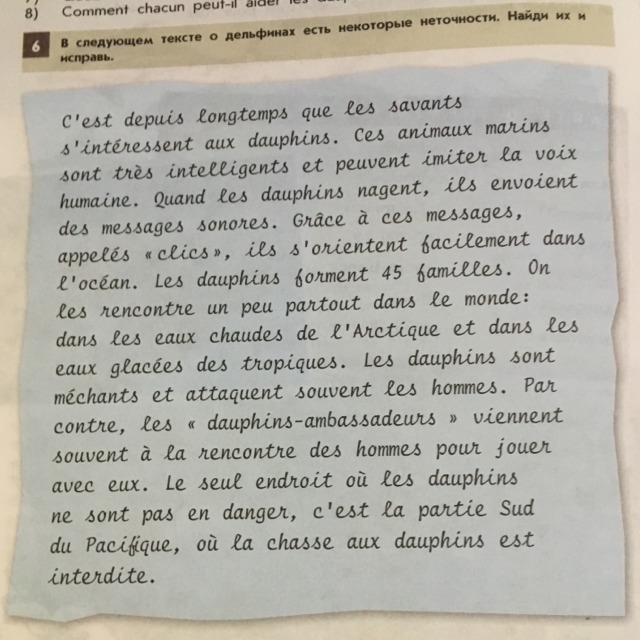 Ученые давно интересуются дельфинами. Эти морские животные очень умны и могут имитировать человеческий голос. Когда дельфины плавают, они посылают звуковые сообщения. Благодаря этим сообщениям, называемым клиам, они легко ориентируются в океане. У дельфинов 45 грамм. Они найдены во всем мире в теплых водах Арктики и в ледяных водах тропиков. Дельфины являются средними и часто нападают на мужчин. С другой стороны, дельфины-послы часто встречаются с мужчинами, чтобы поиграть с ними. Единственное место, где дельфины не подвергаются опасности, - это южная часть Тихого океана, где охота на дельфинов запрещена.
