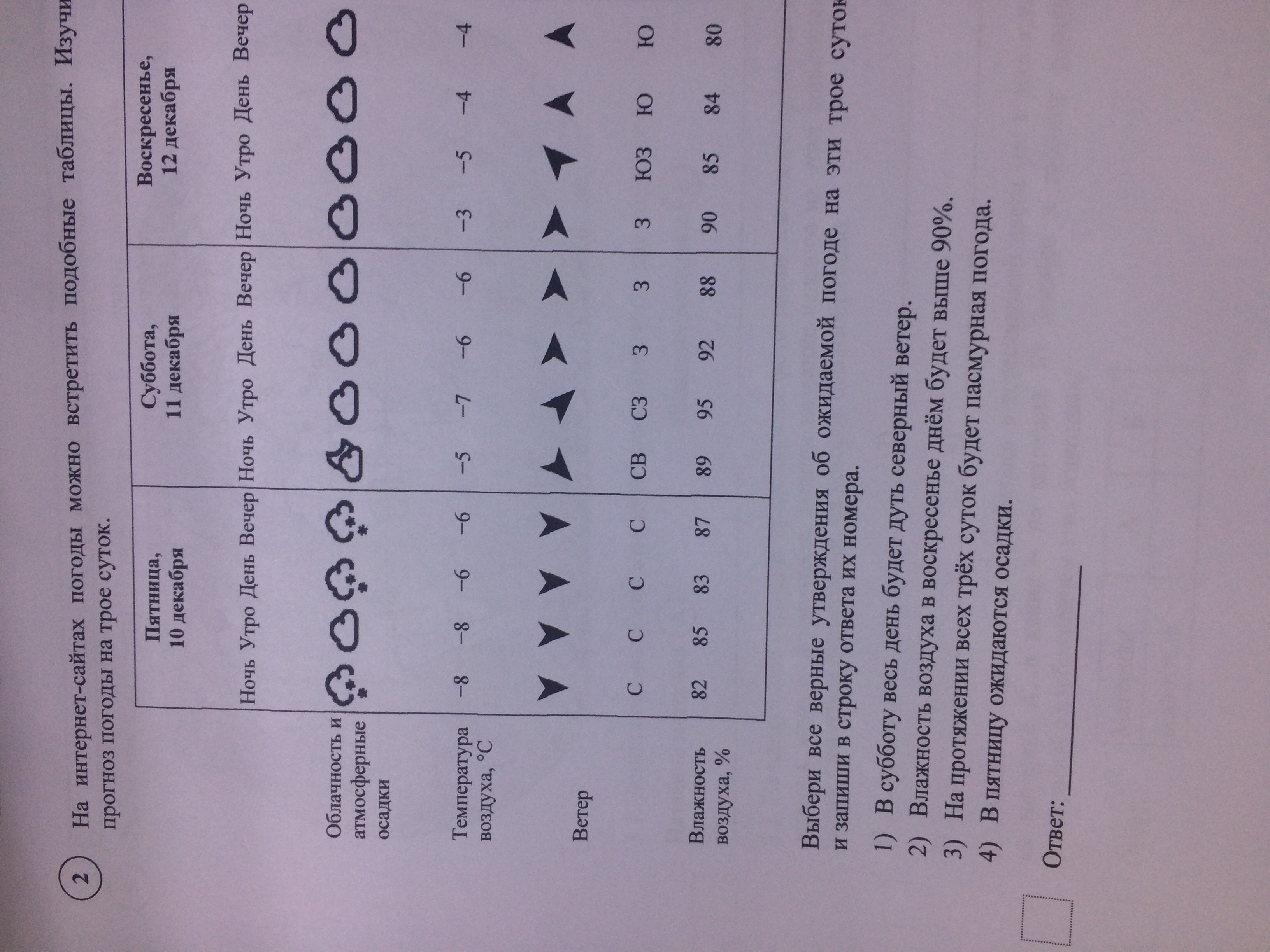 3, потому что мы видим что все 3-е суток пасмурно. 4,потому что в пятницу осадки (Я не уверен)