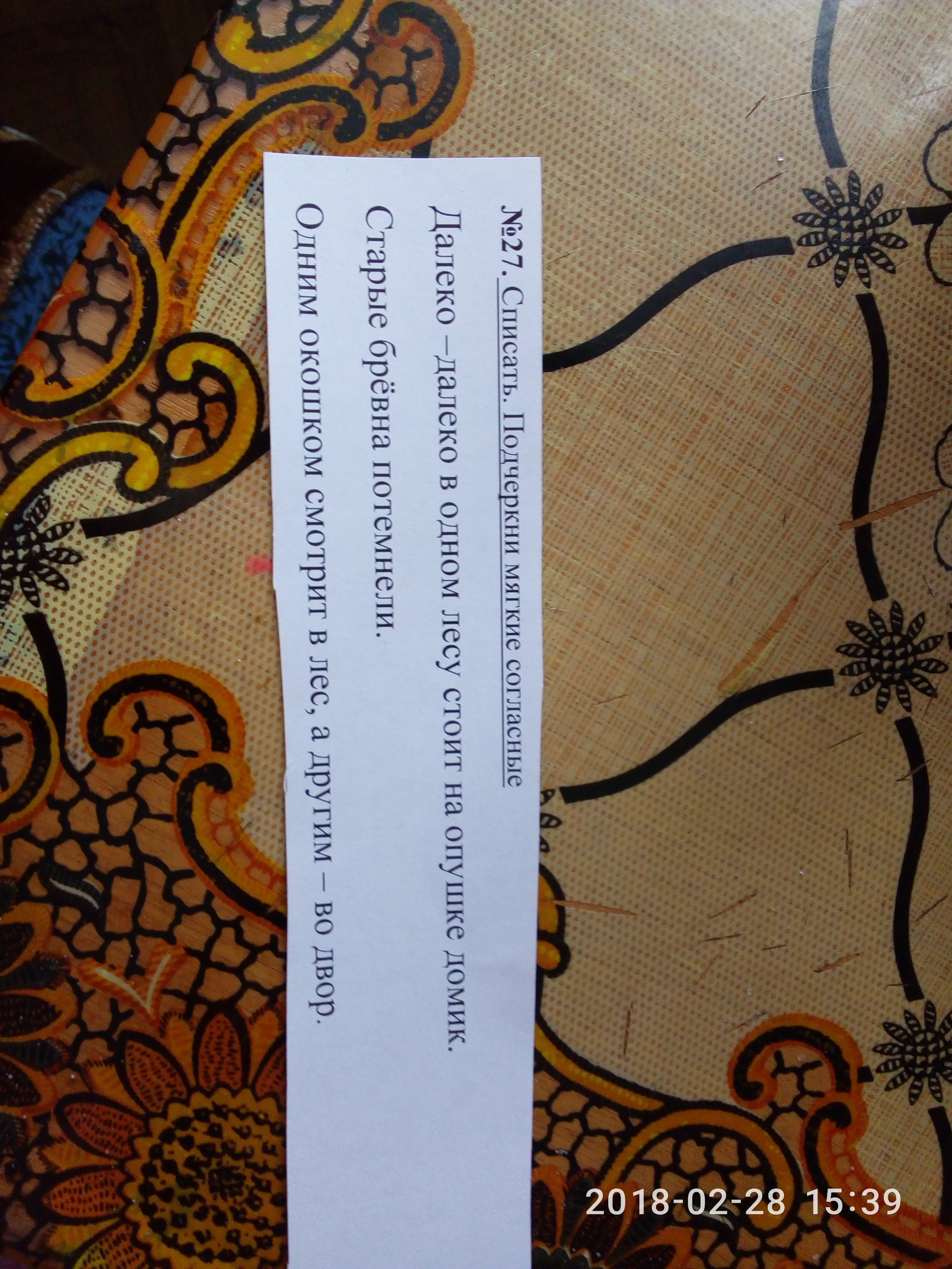 да(л)еко, (л)есу, опуш(к)е, до(м)ик, по(т)ем(н)е(л)и, од(н)им смот(р)ит, (л)ес, дру(г)им