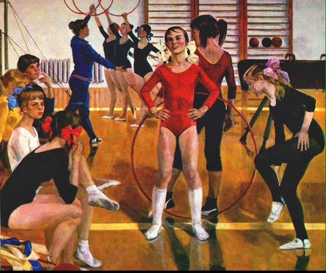 Рассмотрите репродукцию картины А.Сайкиной "Детская спортивная школа" (см. цветную вклейку). Перед вами групповой портрет девочек-спортсменок.