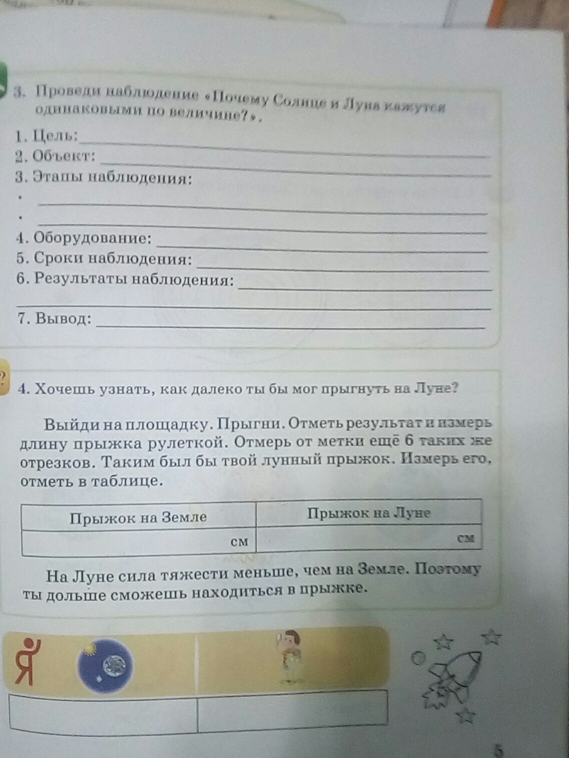 3. Выйти на улицу днём и посмотреть на солнце. Выйти на улицу вечером/ночью и посмотреть на луну.