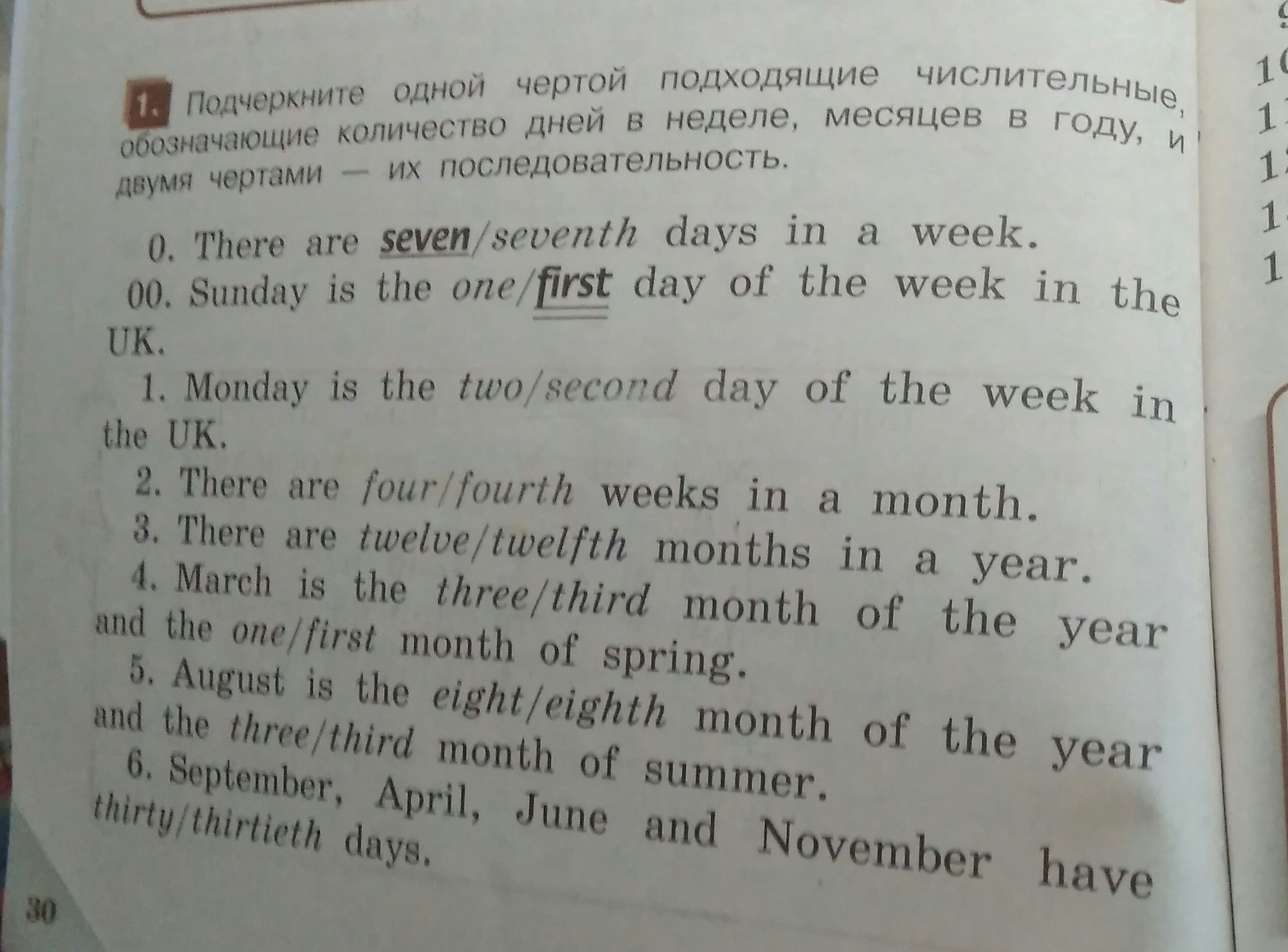 подчеркните одной чертой подходящие числительные обозначающие количество дней в недели, месяцев в году и двумя чертами и — их последовательность.